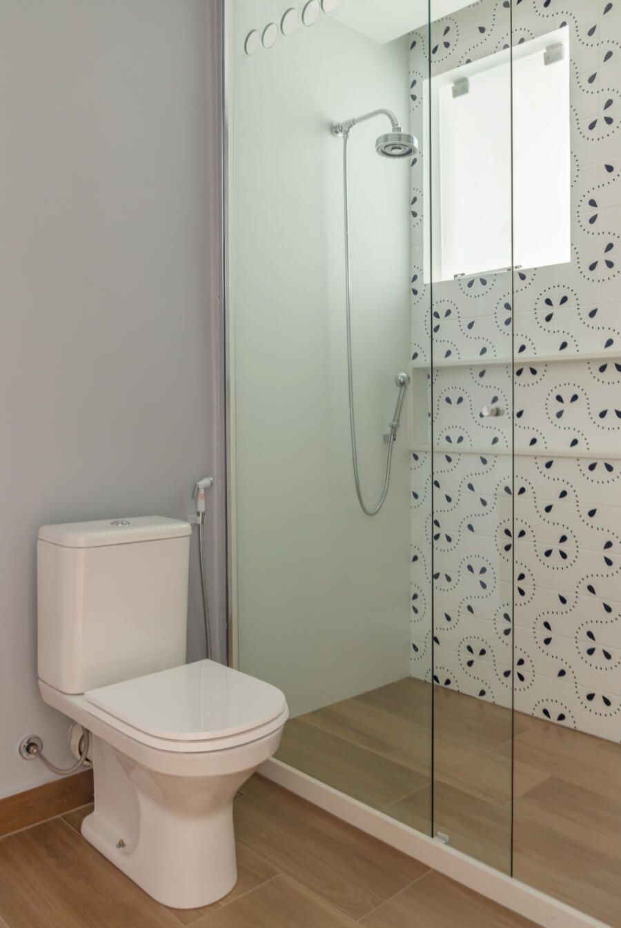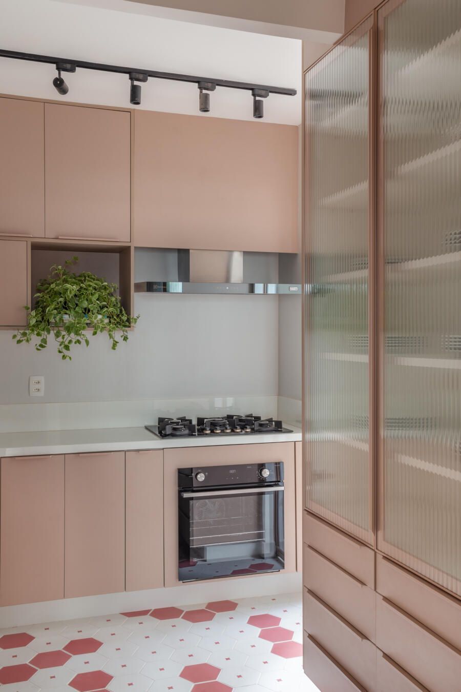 O resultado é um apartamento aconchegante, com ladrilhos hidráulicos, patchwork e vidros canelados que trazem toques retrô ao decór e com piso original em taco revitalizado.