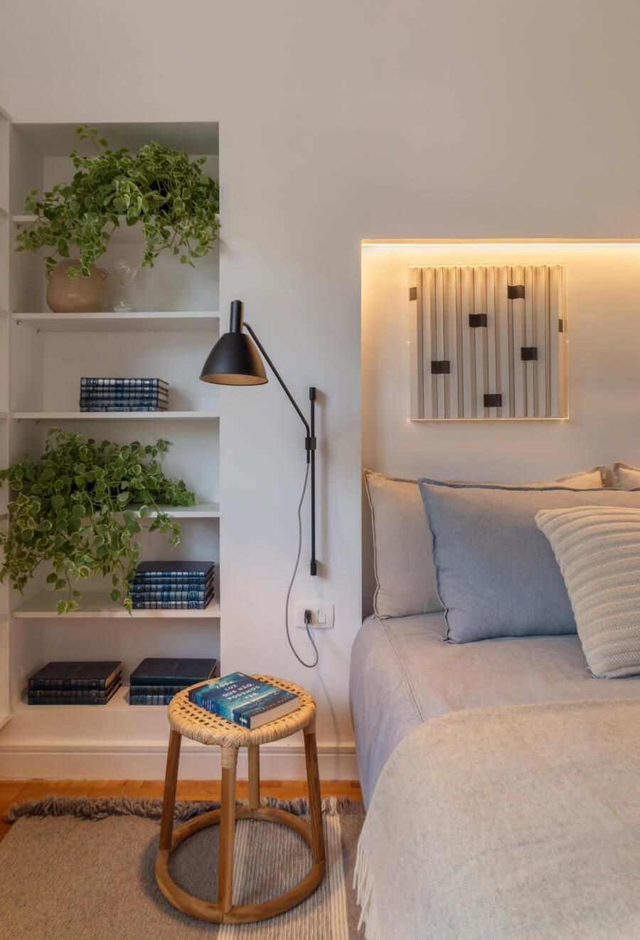 “O apartamento já tinha uma base boa. Então, nosso trabalho partiu dessa base para criar uma atmosfera ainda mais marcante e acolhedora. Uma solução foi brincar com cores, texturas e iluminação, mas sempre com a preocupação de o resultado final não pesar visualmente.”