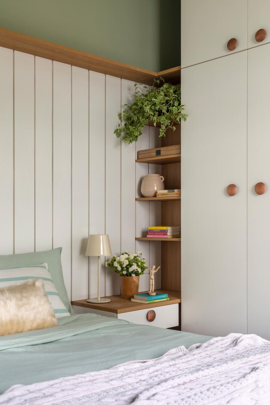 “O filho, por exemplo, pediu bastante espaço para acomodar seus livros, enquanto a filha queria um quarto mais alegre. Já o casal pediu uma cama-tatame para facilitar o acesso do cachorrinho de estimação da família.”