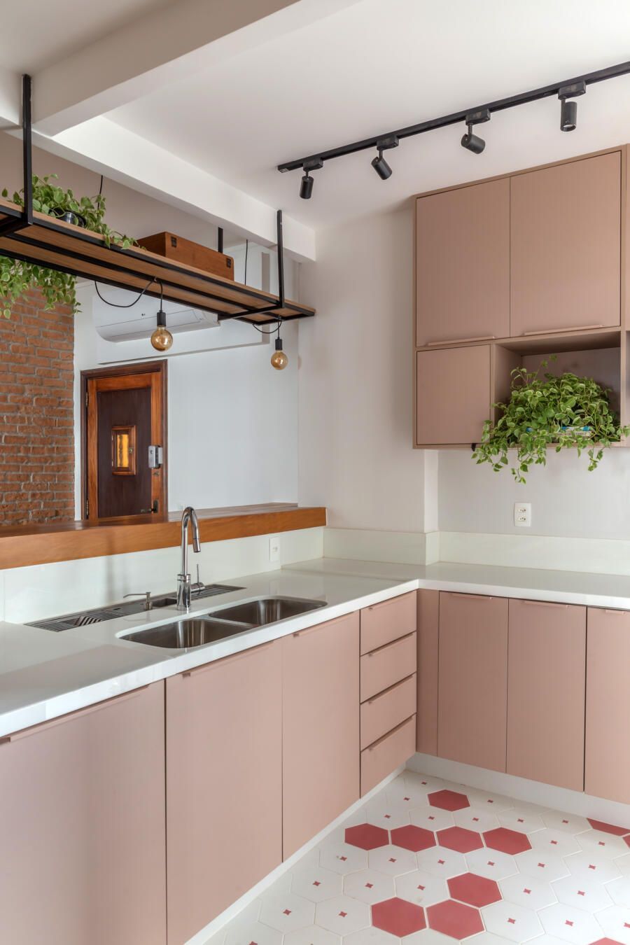 Além do drywall que se encaixou perfeitamente no projeto para criar o quarto do filho e ainda servir como apoio para a cabeceira e estante de um segundo quarto, outra solução inteligente e funcional foi implementada na cozinha para evitar umidade: