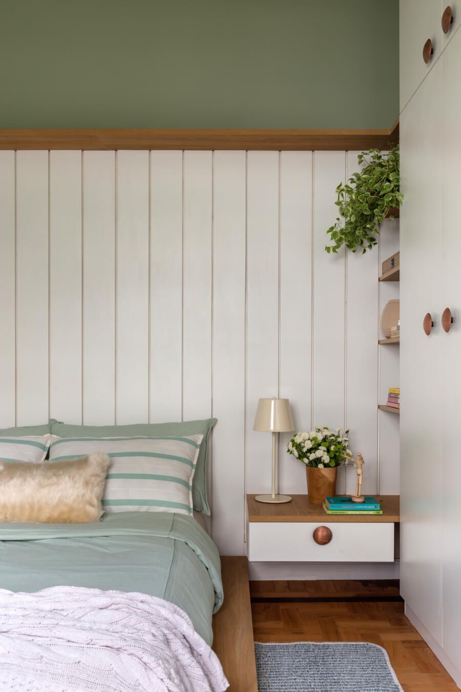 Para isso, um cômodo que antes era aberto para a sala foi transformado no quarto de um dos filhos por meio de parede drywall. O projeto e decoração de cada quarto respeitou os gostos particulares de cada um dos moradores, como conta o escritório:
