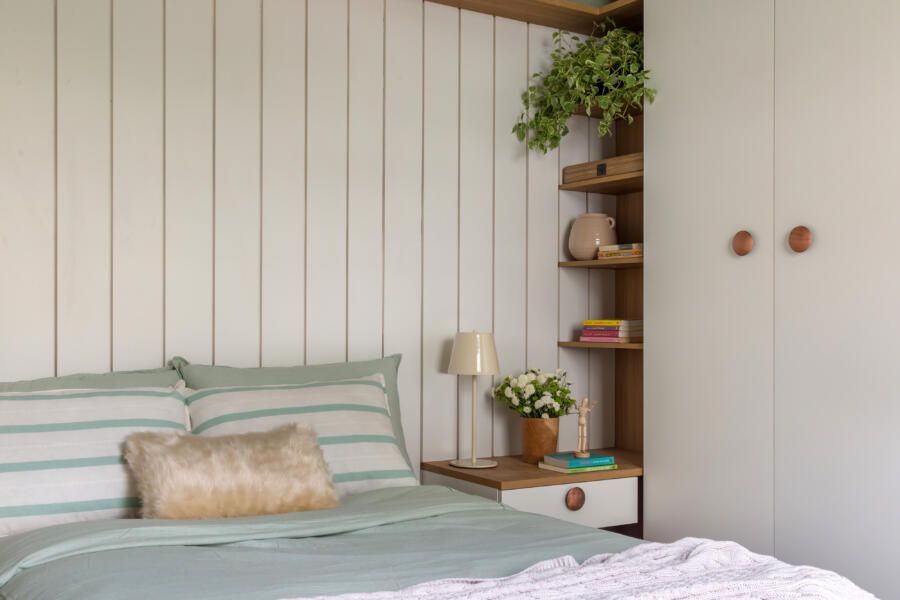 “O filho, por exemplo, pediu bastante espaço para acomodar seus livros, enquanto a filha queria um quarto mais alegre. Já o casal pediu uma cama-tatame para facilitar o acesso do cachorrinho de estimação da família.”