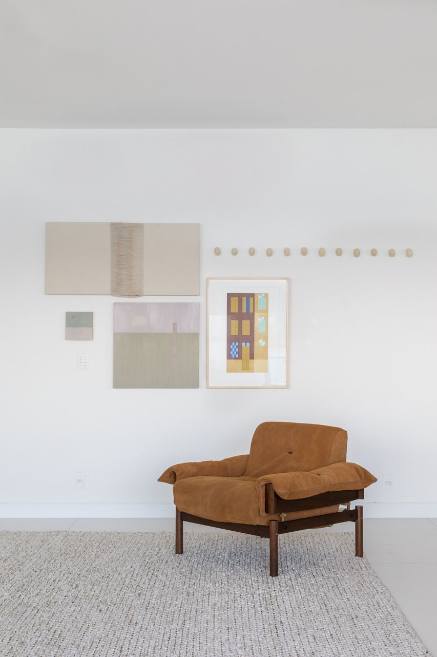 A curadoria de arte e mobiliário foi feita em parceria com o morador, um empresário de São Paulo que passa parte do tempo no Rio para descansar e trabalhar. Ele buscava um projeto com visual limpo, atemporal e acolhedor, que permitisse que o mar fizesse parte da casa. Como resultado, cada ambiente foi pensado para favorecer a vista e criar um clima descontraído.