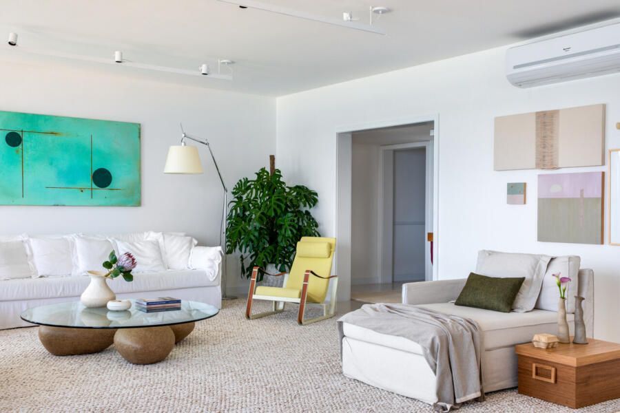 Localizado em um dos endereços mais emblemáticos do Rio de Janeiro, esse apartamento assinado pelo escritório PKB Arquitetura é um ótimo exemplo de como um imóvel alugado pode ser transformado com criatividade e soluções simples. Sem a possibilidade de grandes obras estruturais, o projeto apostou em uma combinação de mobiliário de design, materiais naturais e uma paleta de cores suaves para criar uma atmosfera leve e praiana.