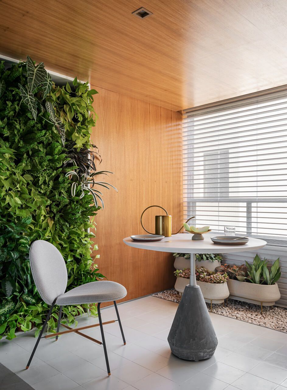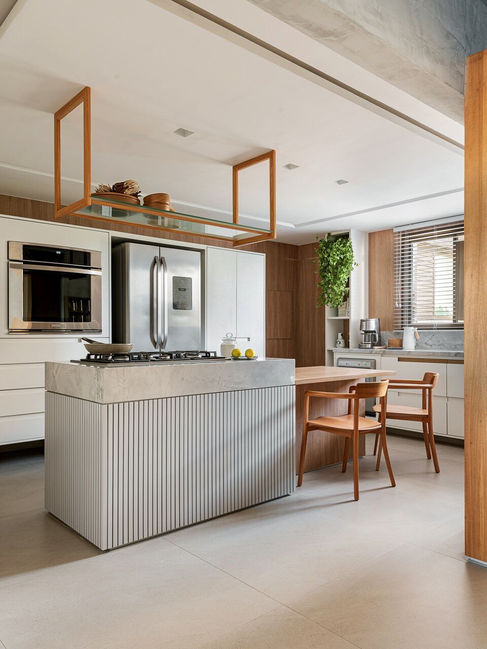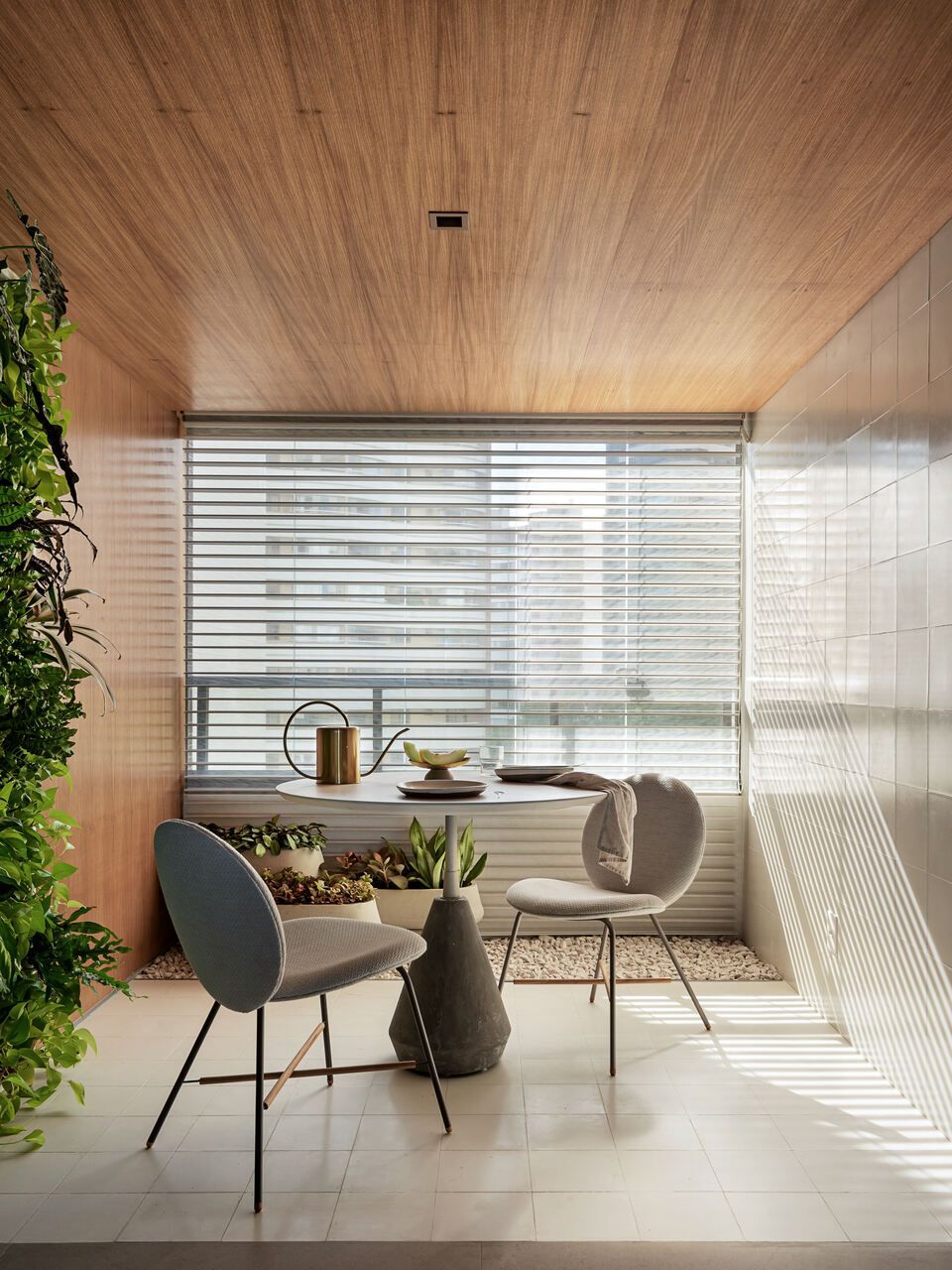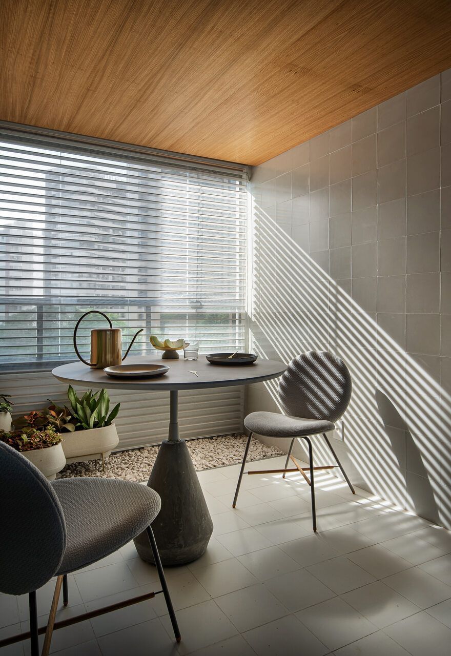 Ela é designer visual e ele é escultor. Casal jovem sem filhos se mudando para um apê maior, de 242m² no Horto Florestal, Bahia, pensando em construir família. A ideia era um projeto contemporâneo que não fosse muito casual e nem tão sofisticado. Chegar nesse ponto de equilíbrio foi um desafio para o do escritório Sinta Arquitetura.