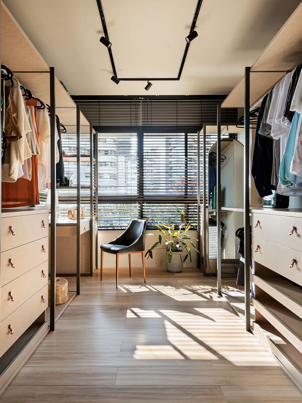 Maior desafio foi selecionar algumas das referências que o escritório e o casal ja tinham construído juntos desde o primeiro projeto. Foi feito um exercício de prioridades e aproveitaram a planta ampla para ter alguns ambientes com estilos um pouco diferentes da área social, como a suíte master e o corredor íntimo.