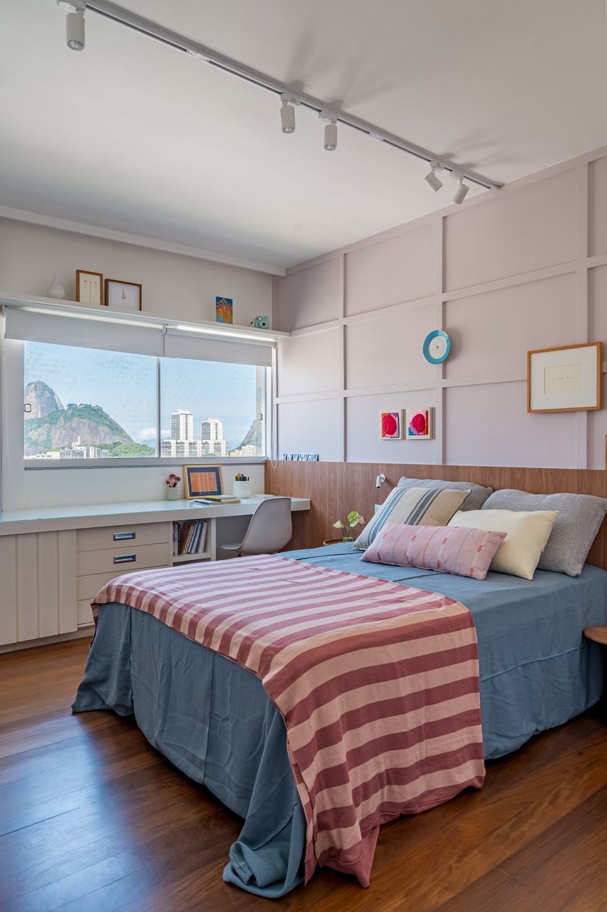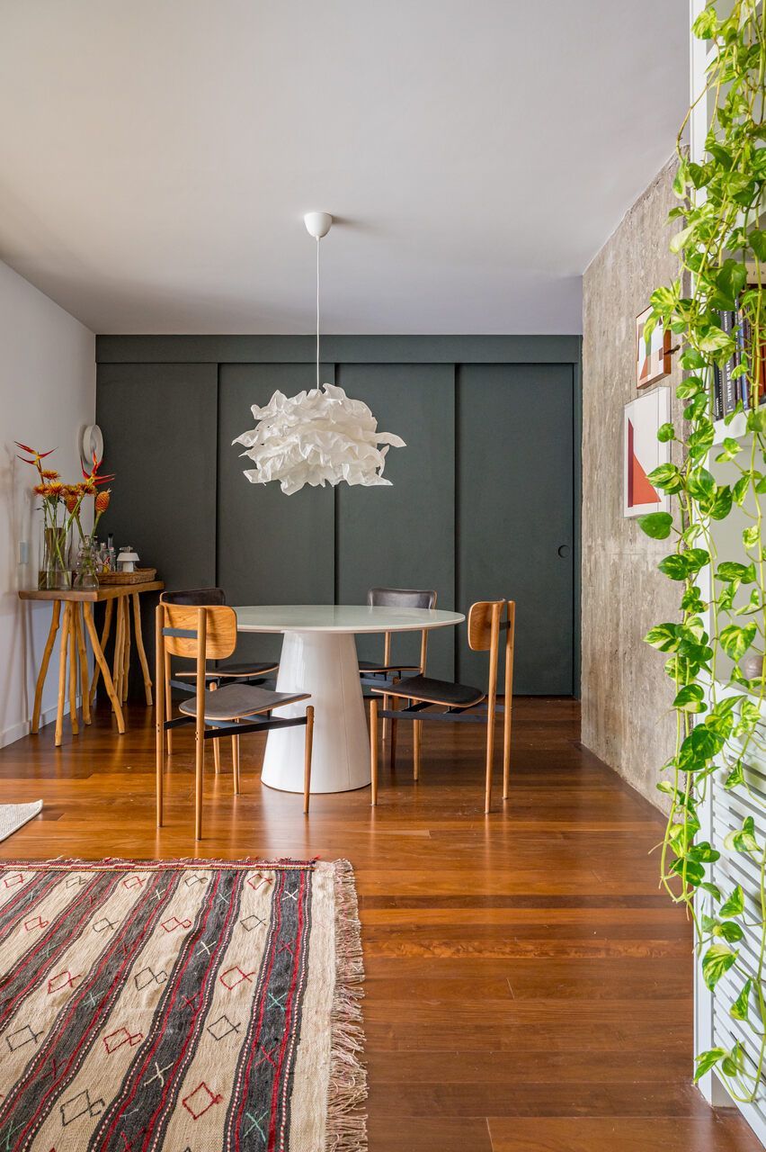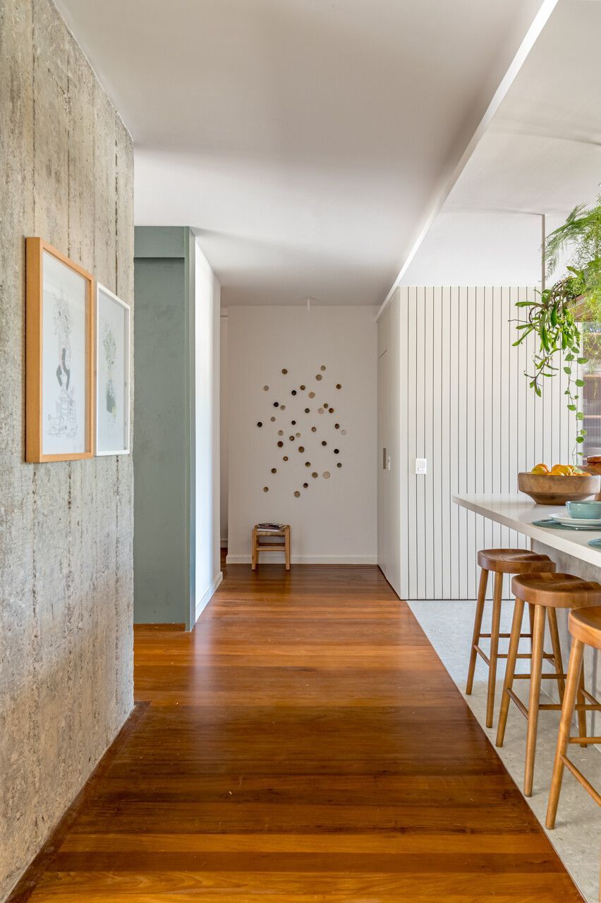 No bairro de Botafogo, no Rio de Janeiro, este apartamento de 250m² localizado em um edifício modernista dos anos 1970 passou por uma reformulação completa de sua planta para atender a uma nova configuração familiar. Assinado pela arquiteta e moradora Andrea Gorayeb, o projeto transformou o imóvel onde a profissional cresceu em um lar para ser vivido hoje com o marido, seus quatro filhos adolescentes e duas pets.