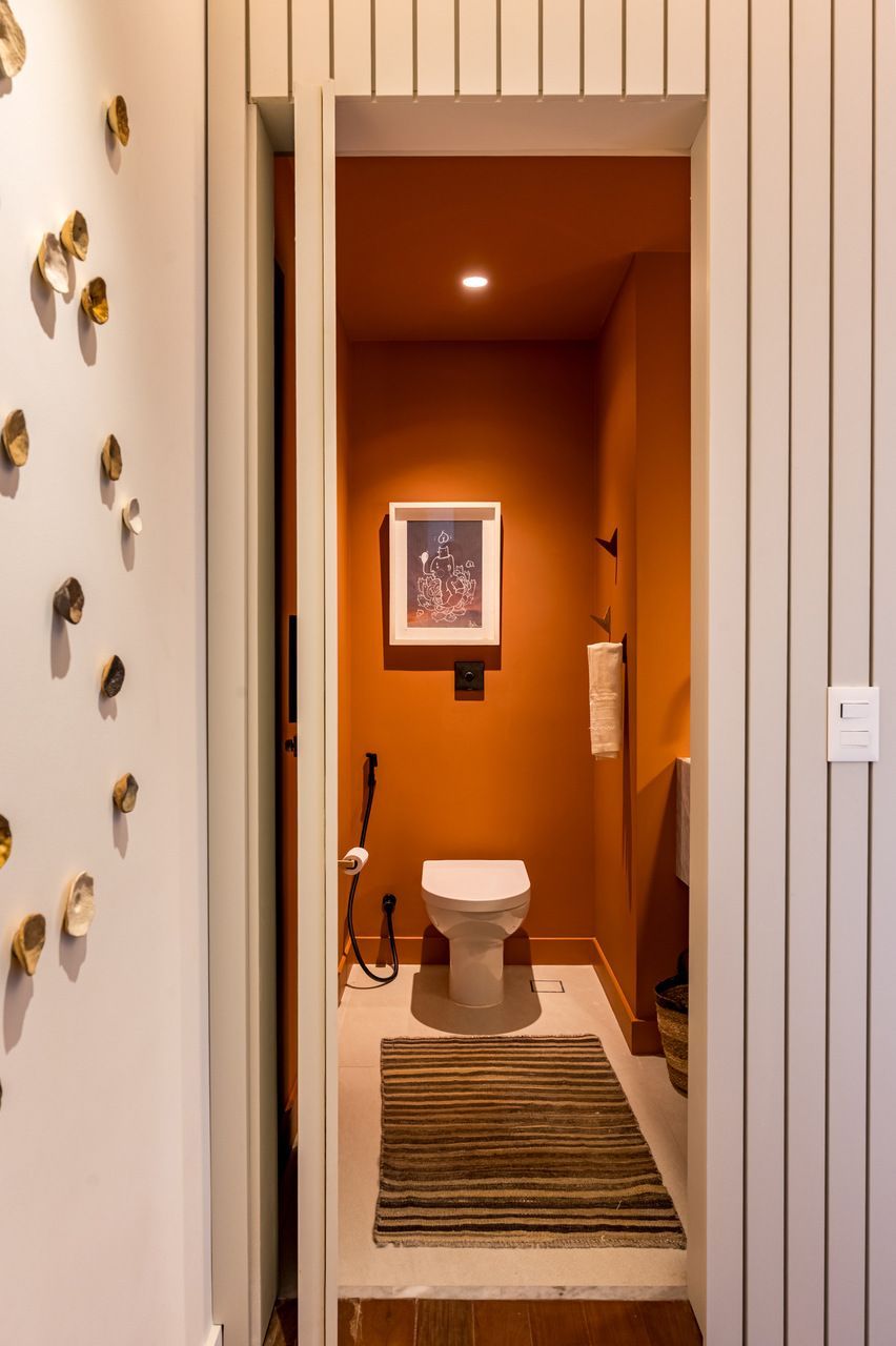 “O desafio técnico estava justamente em criar esses ambientes dentro da planta existente, sem perder a essência do espaço. A solução veio com criatividade: a sala original de 70m² cedeu parte da sua área para abrigar um novo quarto e um home office. Já o terceiro banheiro nasceu da união de parte de um dos quartos com a área de um banheiro amplo já existente, resultado: duas suítes, um banheiro social e o lavabo original preservado.”