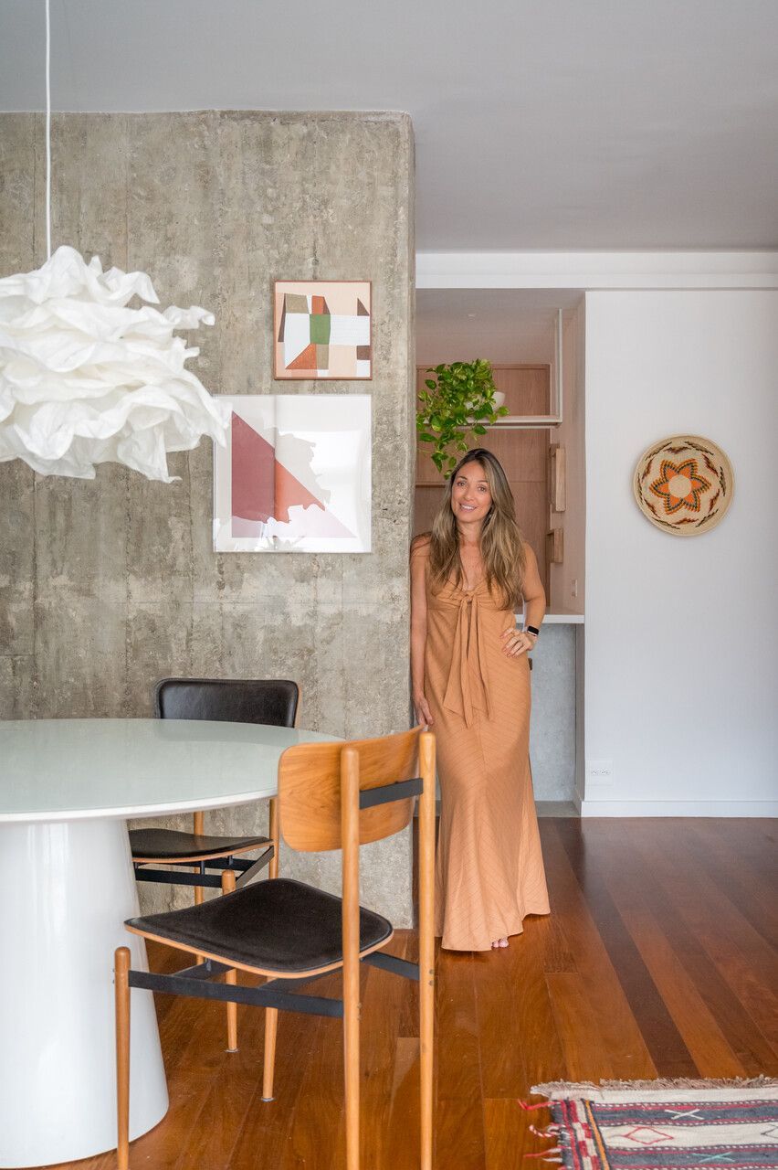 “Este apartamento guarda uma história muito especial, foi aqui que vivi minha adolescência e parte da vida adulta ao lado dos meus pais, hoje falecidos. Reformá-lo foi um ato de amor e memória, transformando o lar da minha infância no lar da minha nova família. Hoje, divido esse espaço com meu marido e nossos filhos. Somos uma família grande e cheia de vida, que precisava de um apartamento com cinco quartos e três banheiros.”