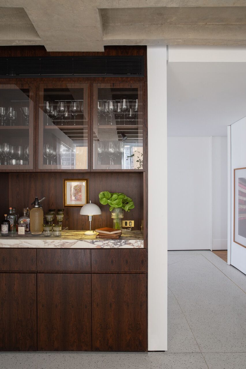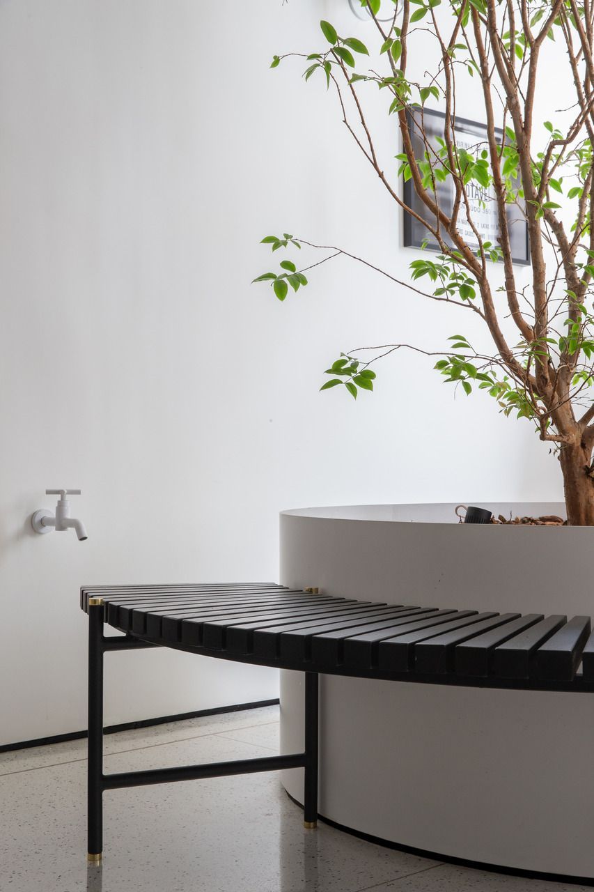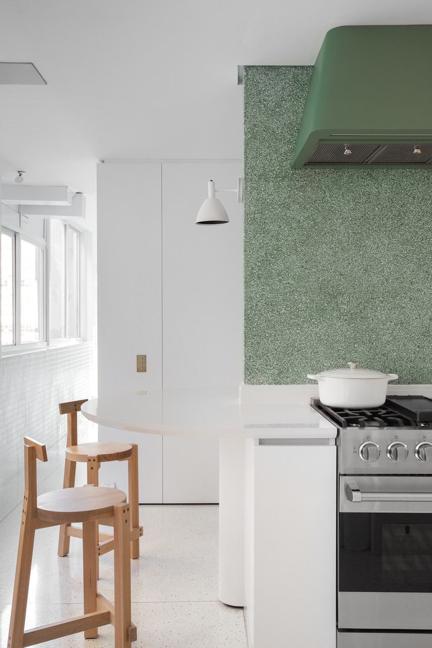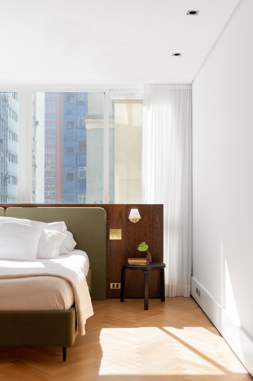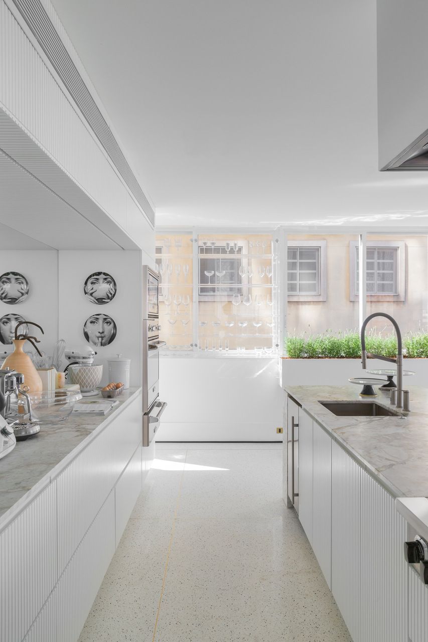 “No conceito estético, o equilíbrio entre uma arquitetura com linhas limpas, formas puras e materiais mais clássicos, transporta-nos a uma época de ouro. Sem querer copiar coisas do passado, mas usando ele como degrau para se fazer algo novo. Mesclando brancos que mudam o tom de acordo com a luz do sol, uma marcenaria contrastante com o piso de granilite, unidos por detalhes em latão e texturas da decoração. Uma homenagem a avenida Paulista como um todo. Dos casarões de elite à democracia do MASP.”