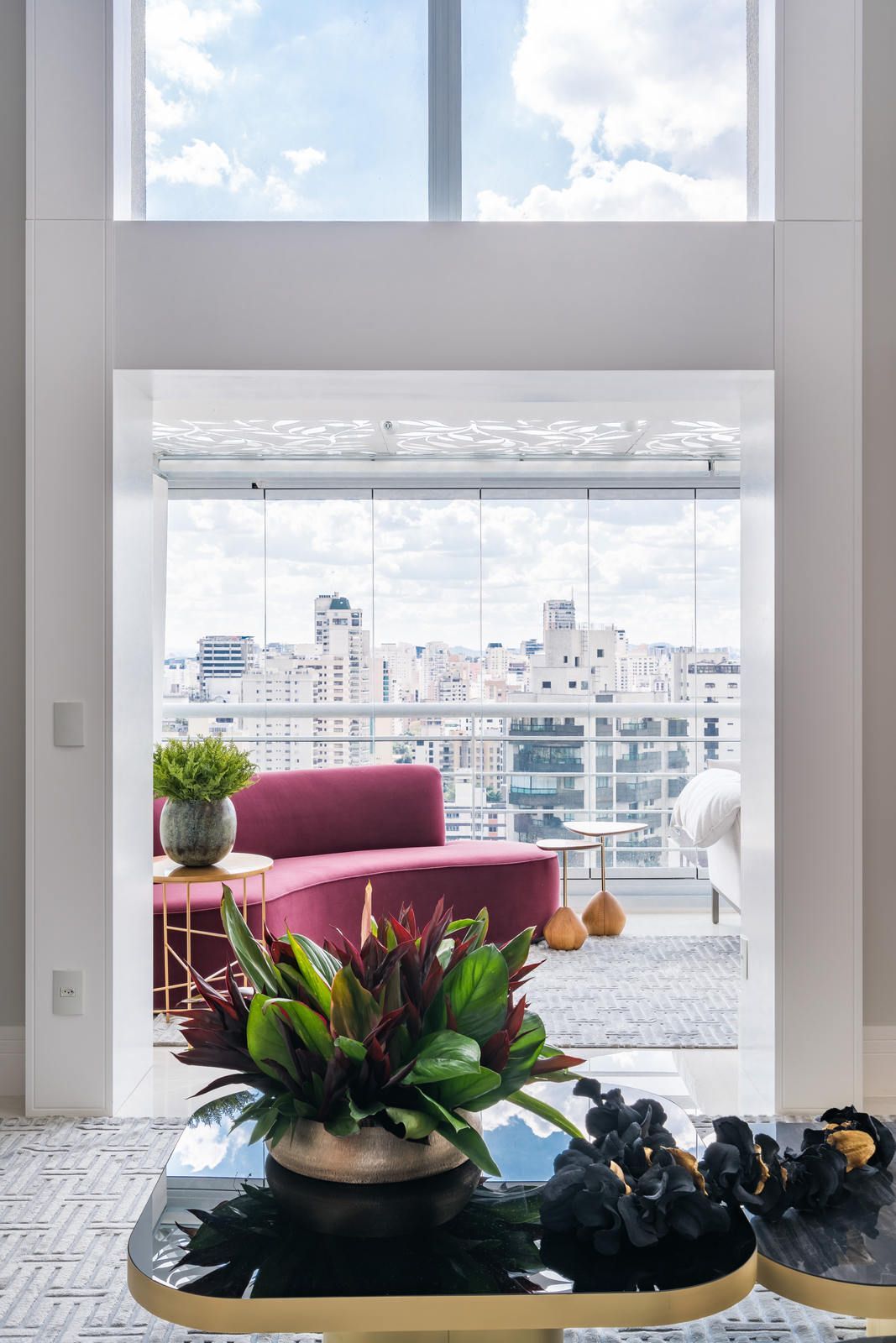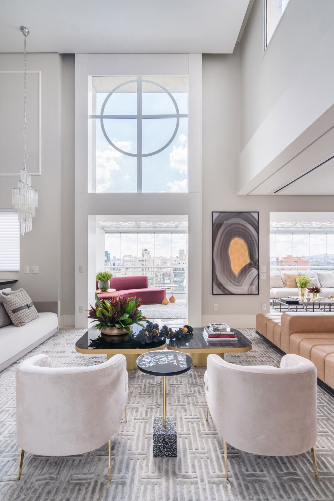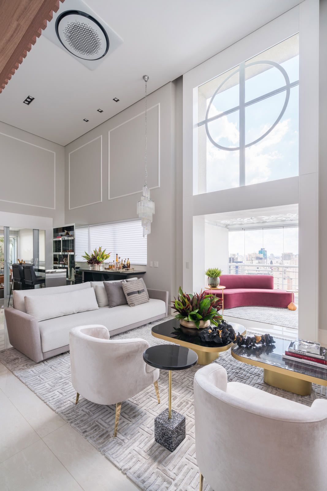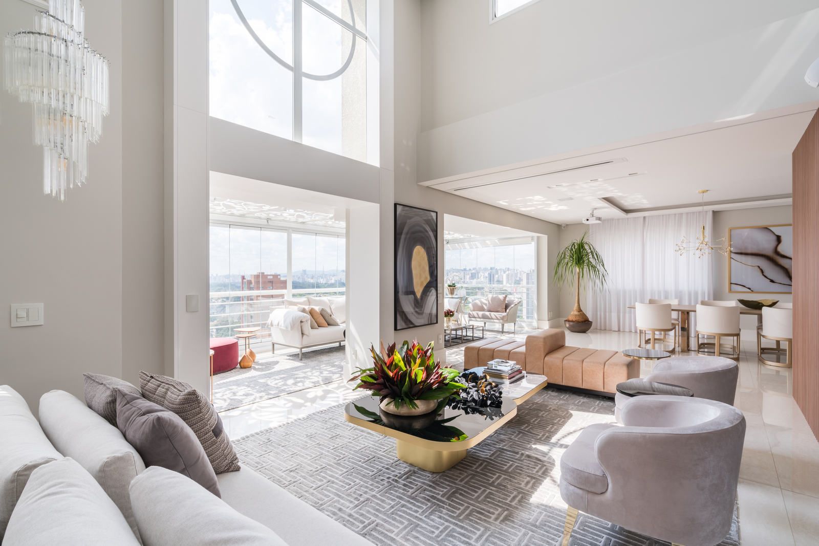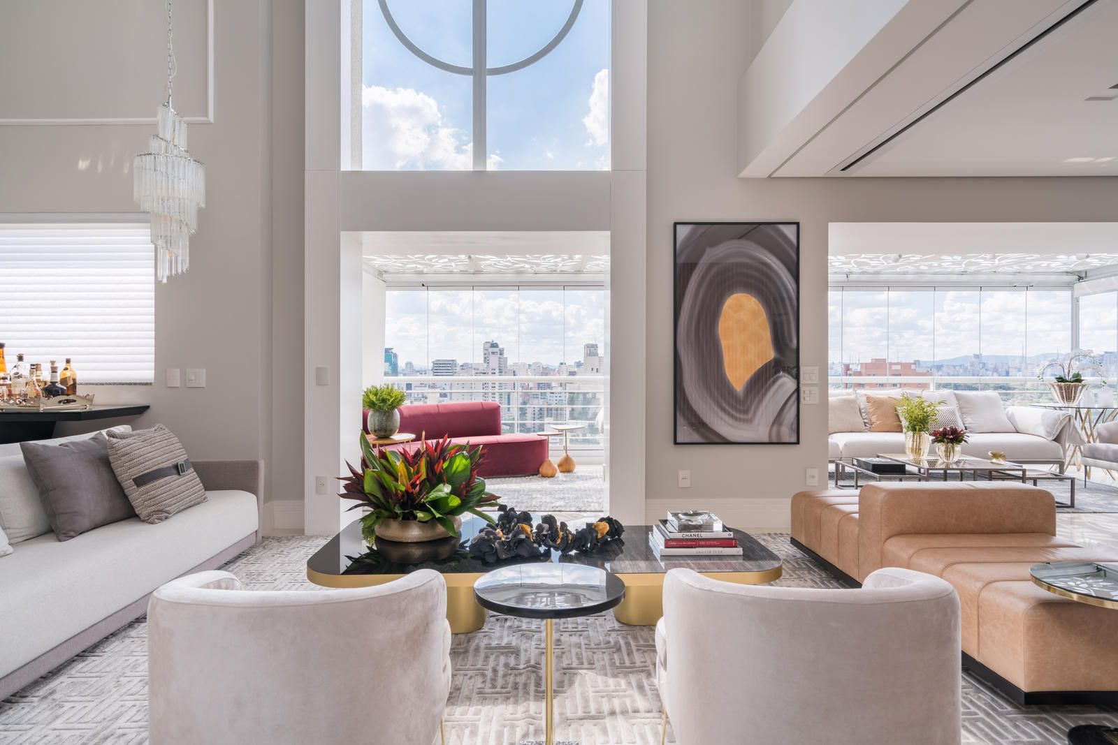 “Quando apresentado, o imóvel já possuía duas coberturas unificadas e varandas integradas após uma grande intervenção arquitetônica, entretanto o apartamento era impessoal, com móveis mal utilizados; faltava bossa e charme.”