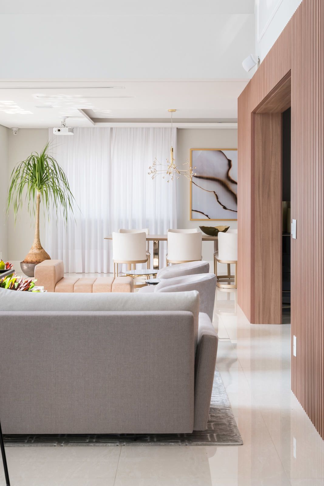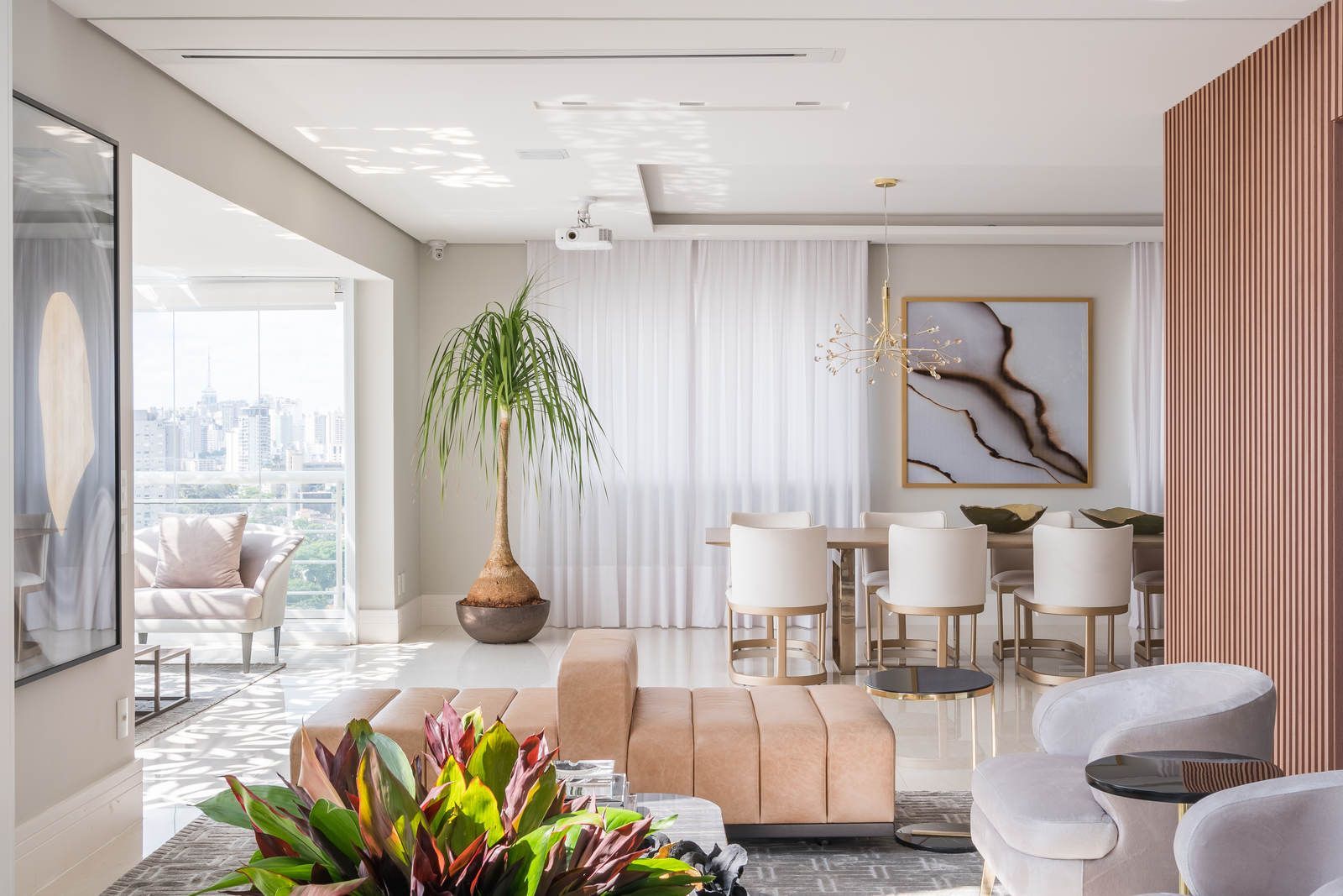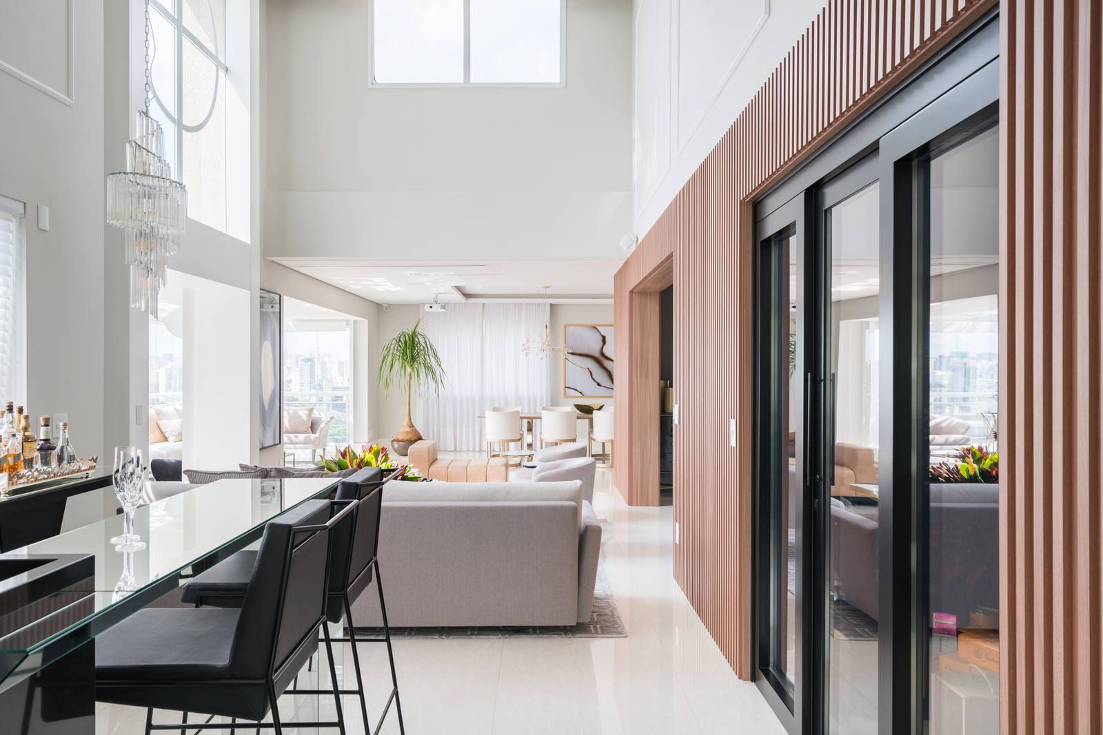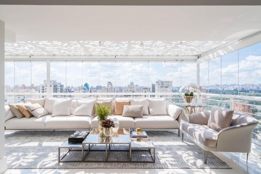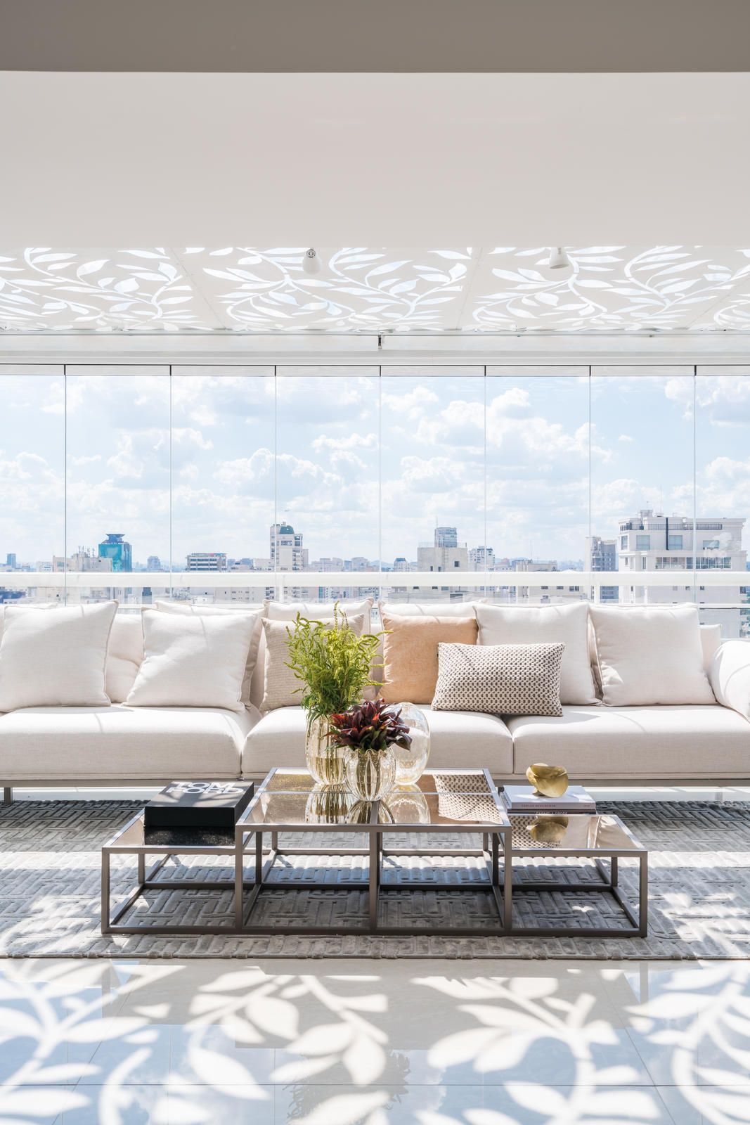 “Quando apresentado, o imóvel já possuía duas coberturas unificadas e varandas integradas após uma grande intervenção arquitetônica, entretanto o apartamento era impessoal, com móveis mal utilizados; faltava bossa e charme.”