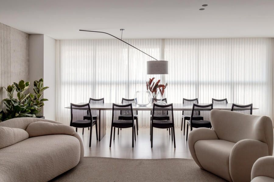 O envolvimento foi tão intenso que o cliente fez apenas um pedido: que Eugênia tratasse o projeto como se fosse seu. E assim foi. Da concepção ao pós-obra, em um processo acelerado que durou menos de sete meses, a arquiteta assumiu todas as decisões, desde o mobiliário elegante e os eletros até negociações com fornecedores e montagem de algumas peças de iluminação. A confiança mútua permitiu uma fluidez rara, na qual nenhuma alteração precisou ser feita ao longo do caminho.
