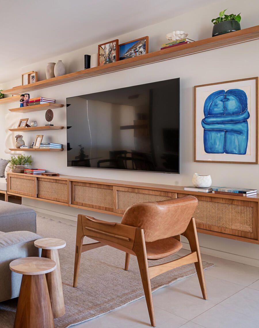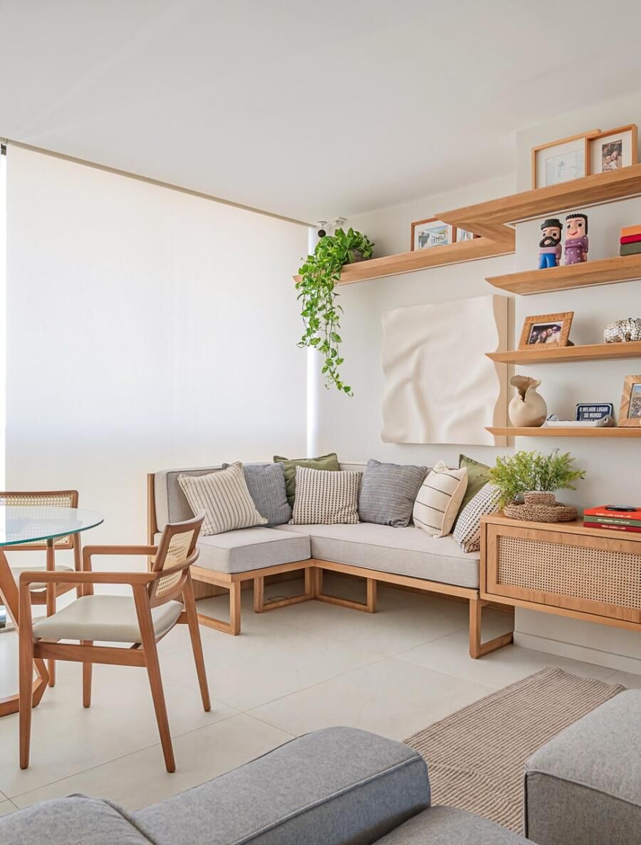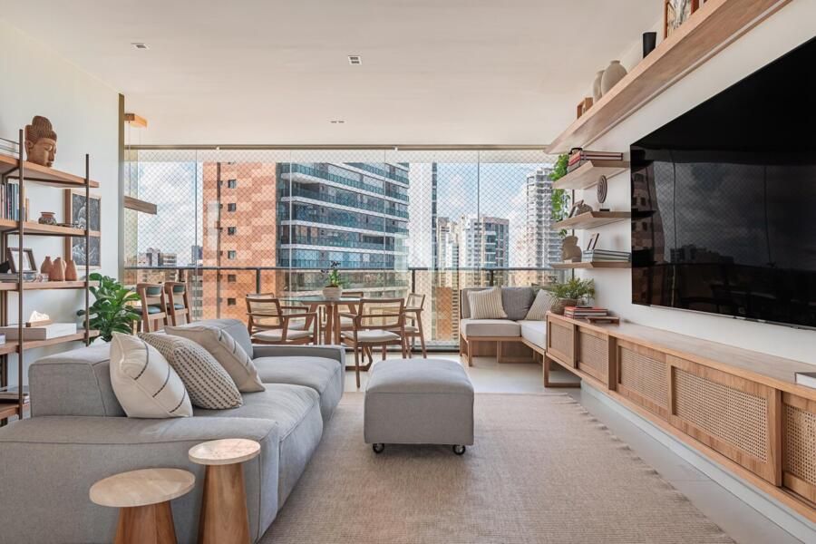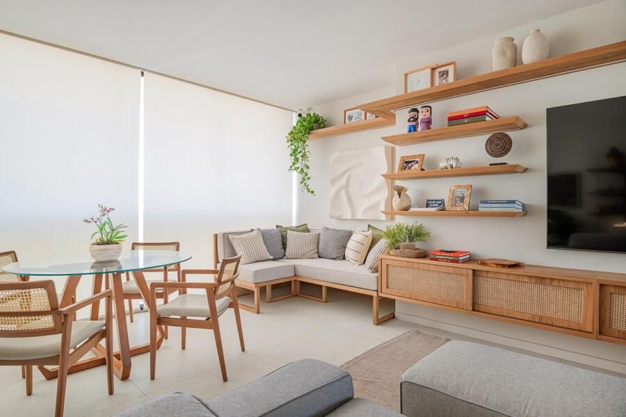 Logo após a compra, decidiram transformar o novo lar em um espaço que refletisse suas necessidades e estilo de vida. Para isso, chamaram a arquiteta Juliana Zappa, que ficou responsável por toda a reforma e decoração do apartamento. O projeto foi guiado por desejos muito claros dos moradores: mais espaço para conviver, soluções práticas para o dia a dia com crianças e cachorro, e um ambiente que fugisse do visual engessado e padronizado.