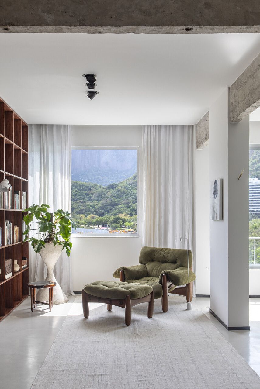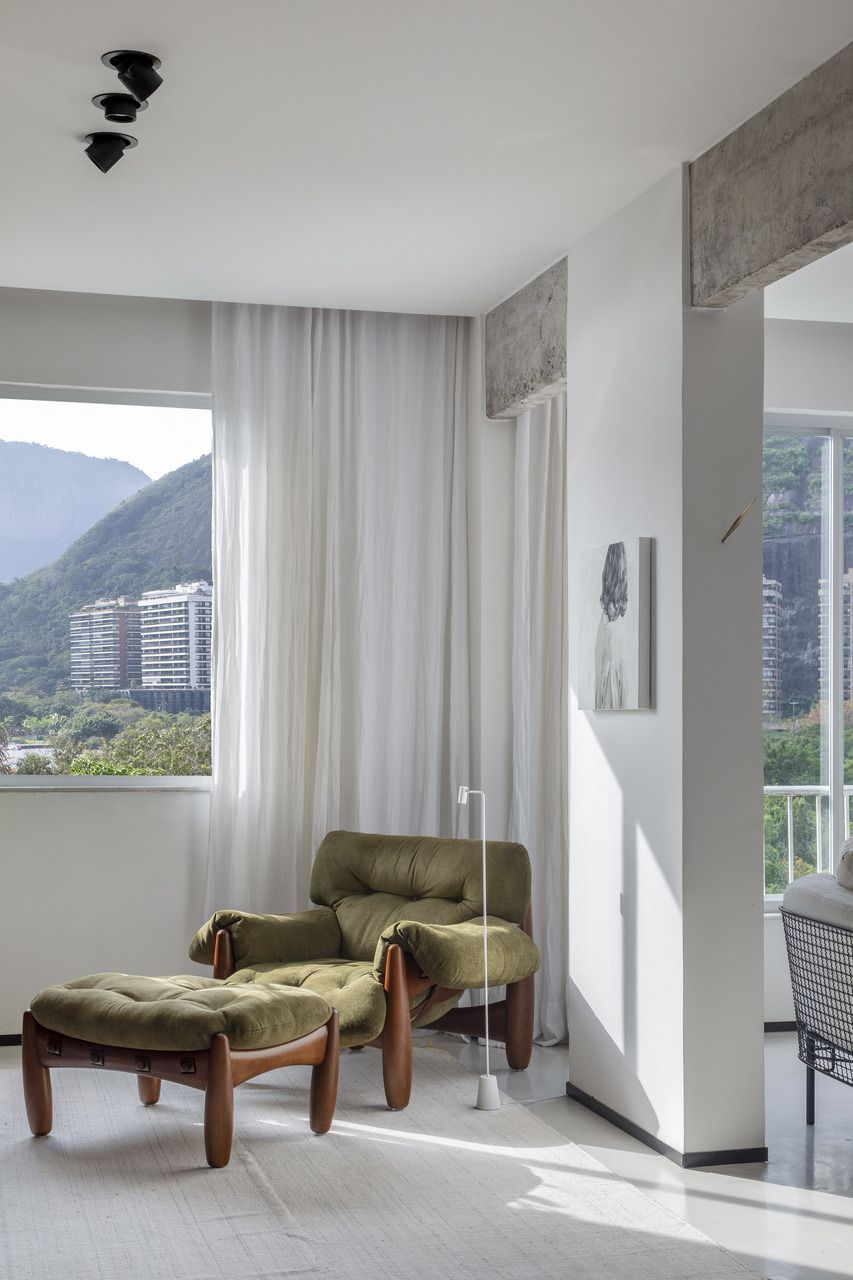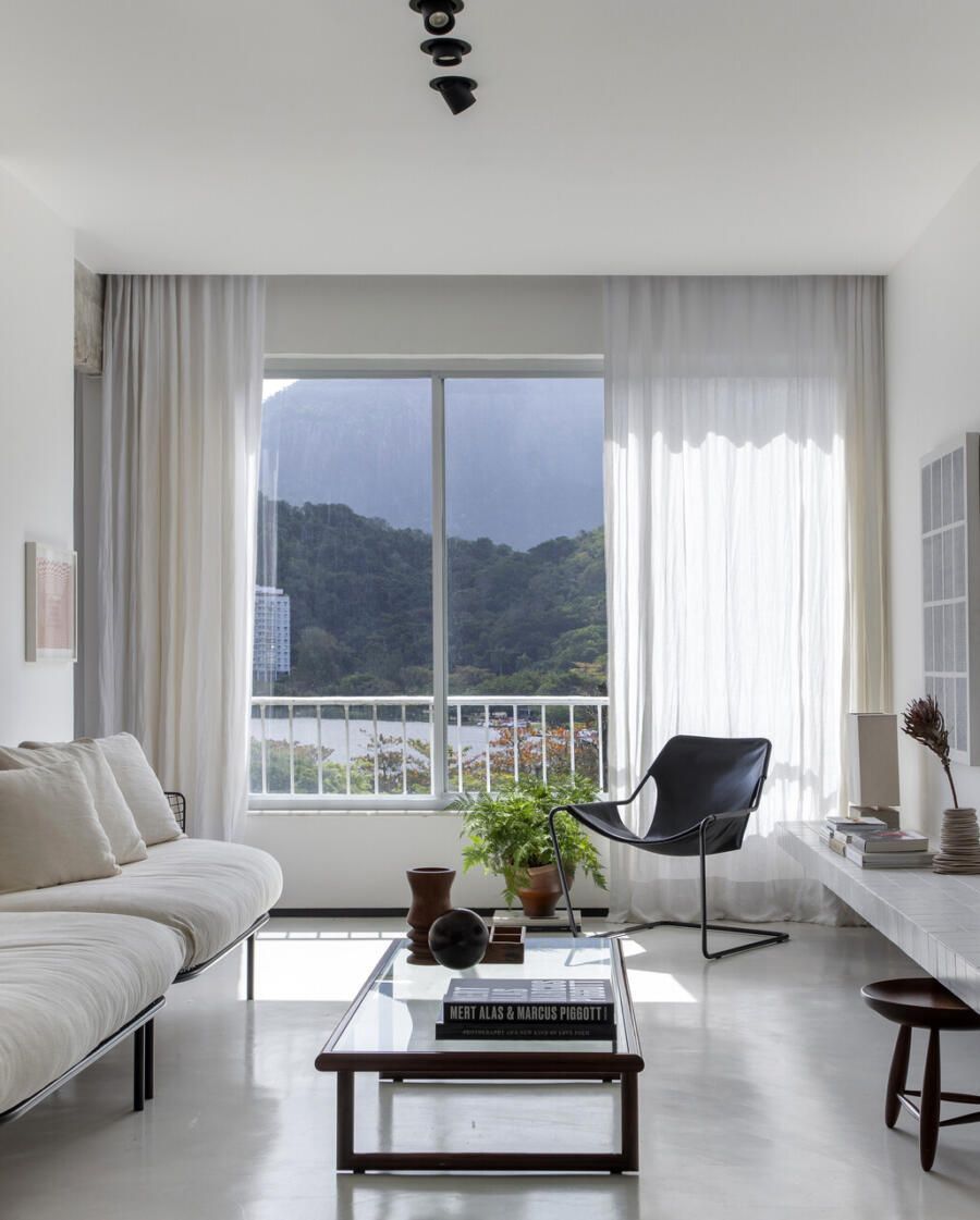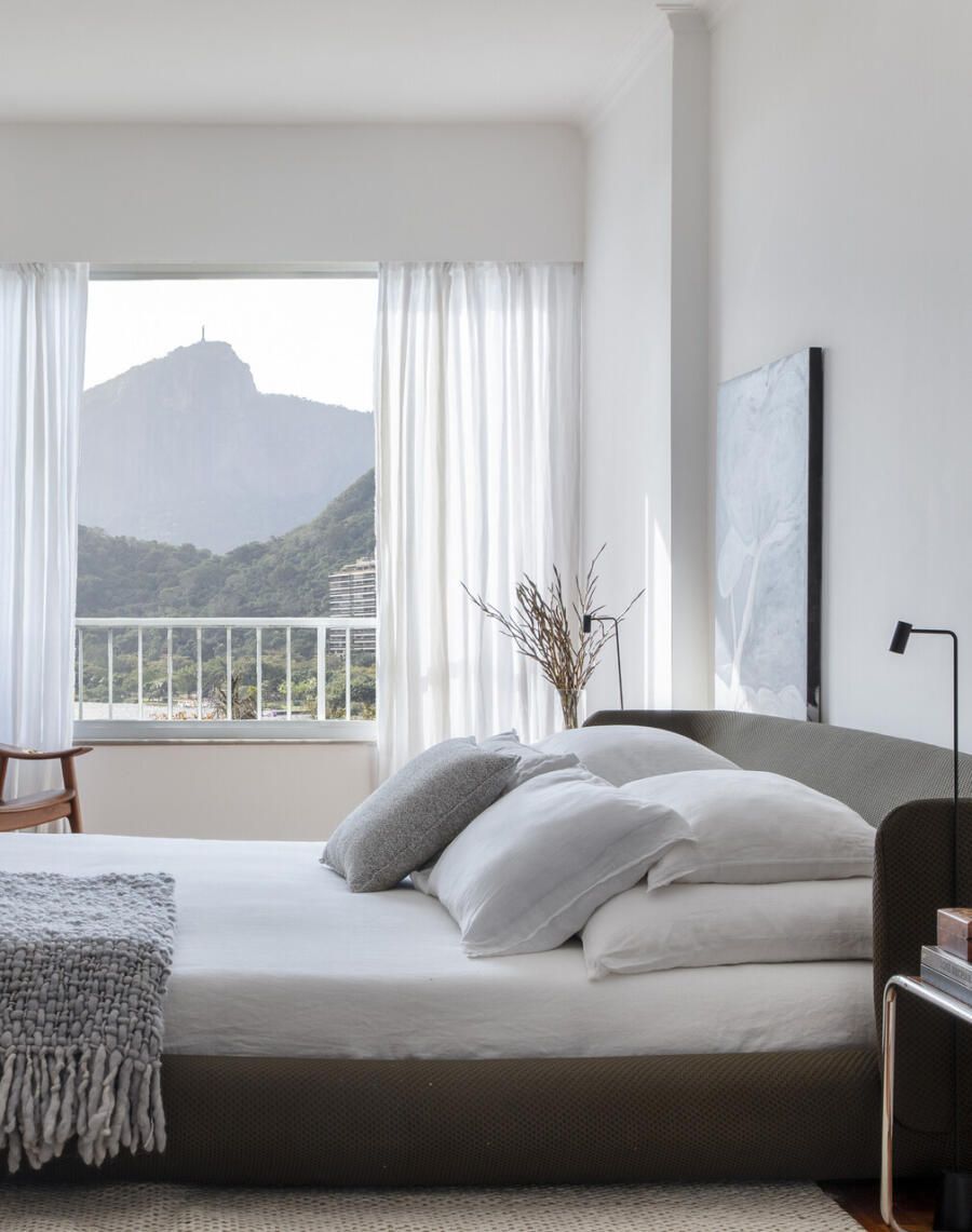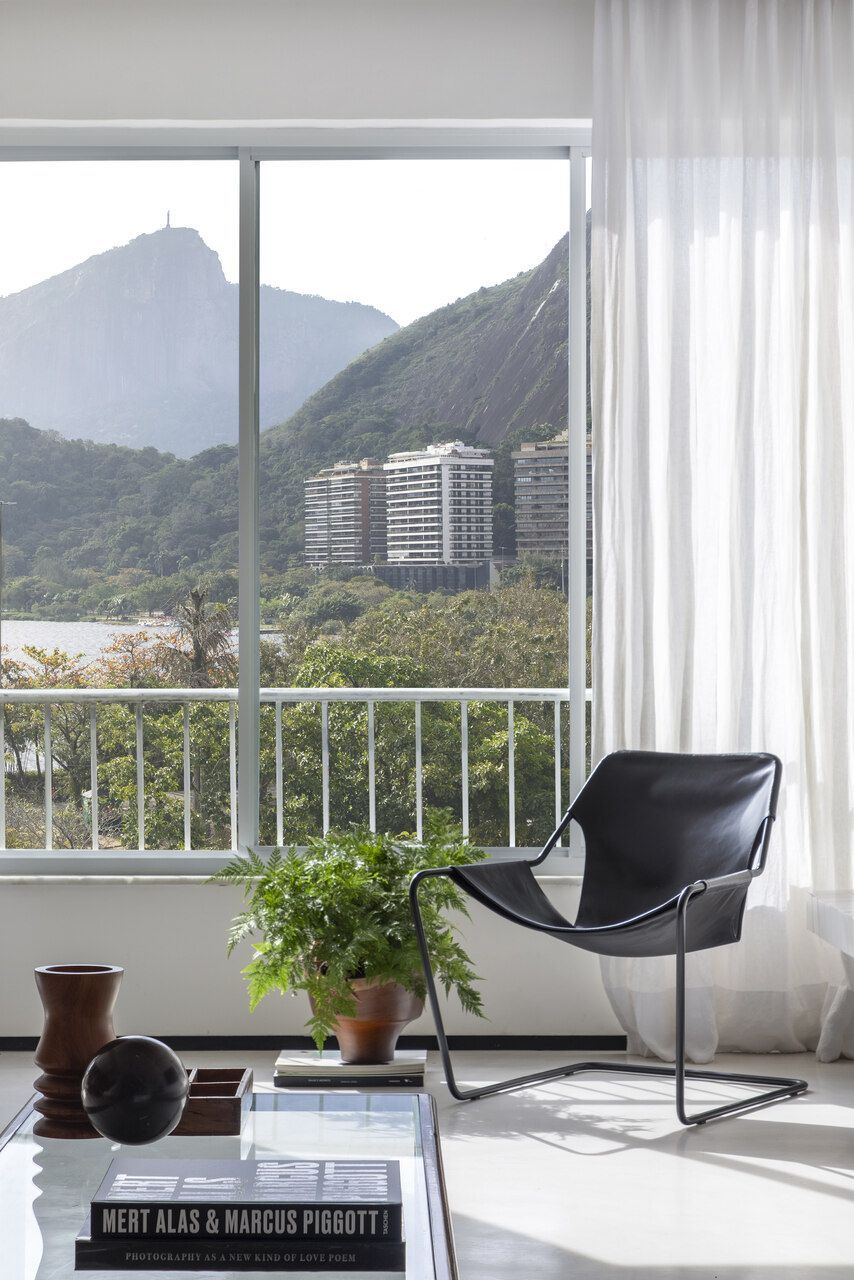 Localizado na Lagoa Rodrigo de Freitas, no Rio de Janeiro, este apartamento de 210m² foi escolhido pelo arquiteto João Panaggio e pelo cabeleireiro Fil Freitas como o primeiro lar do casal. Mesmo sabendo que a reforma da cozinha, dos banheiros e a criação de um lavabo seriam necessárias, o que realmente conquistou os dois foi a luz natural abundante e a vista para alguns dos cartões-postais mais icônicos da cidade: Lagoa, Pedra da Gávea, Morro Dois Irmãos e Cristo Redentor.