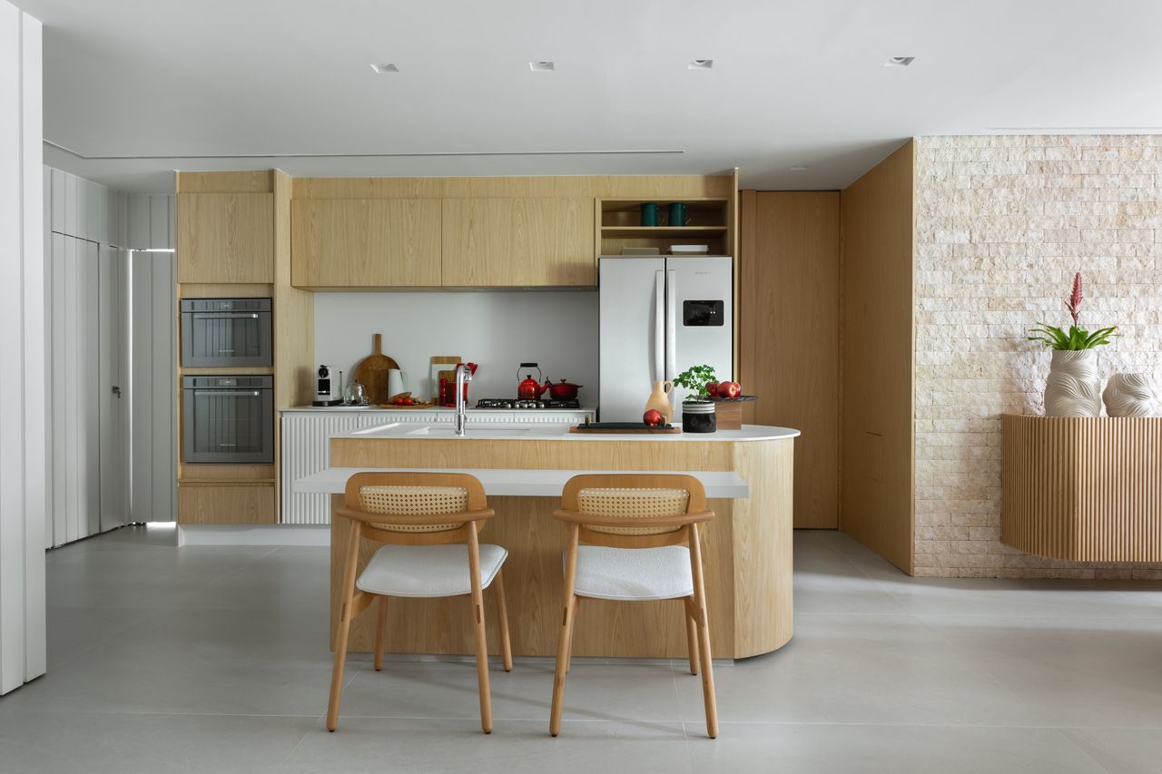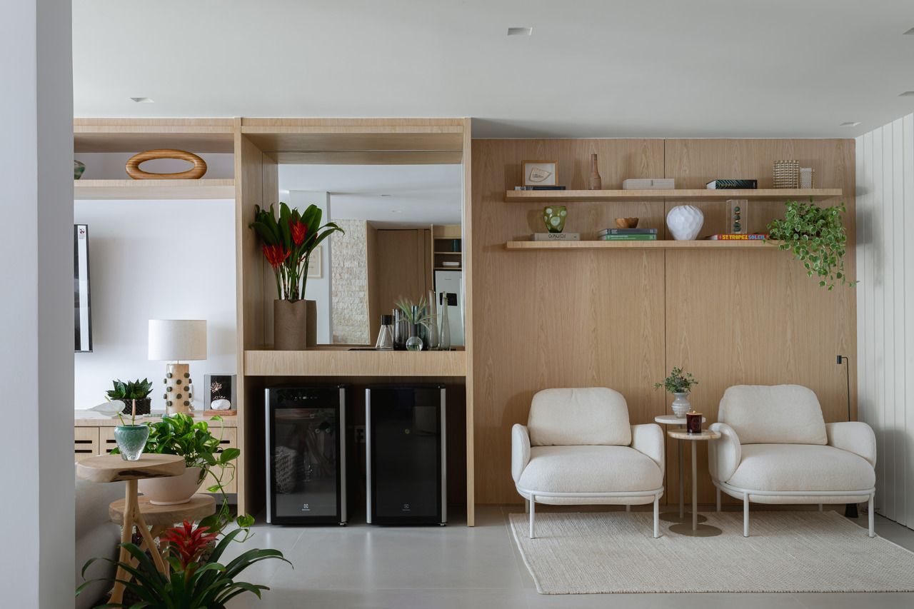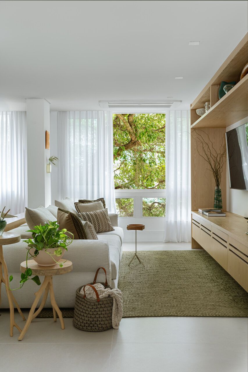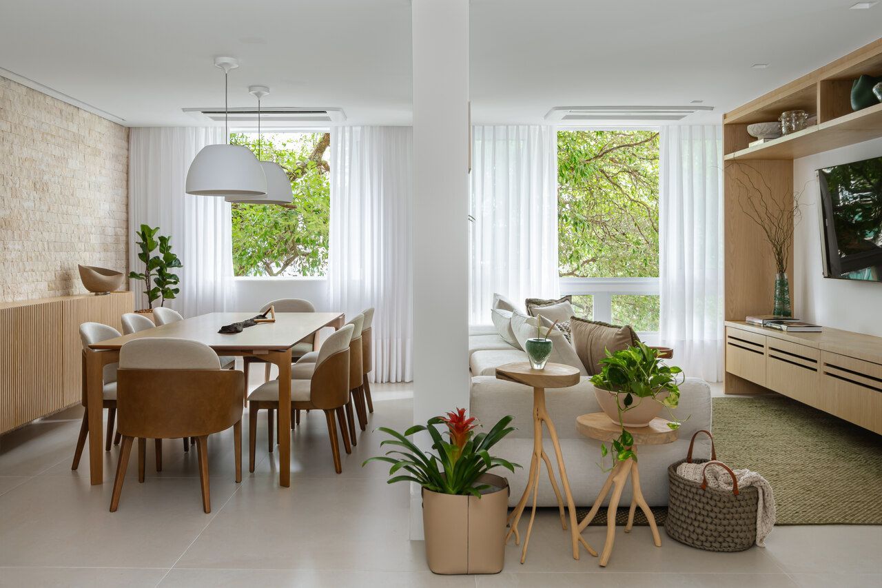 O apartamento de 198m², no Leblon, Rio de Janeiro assinado pela Bianca Faria Pacheco Sieberer destaca a natureza e as copas das árvores como plano de fundo para o projeto de interiores.