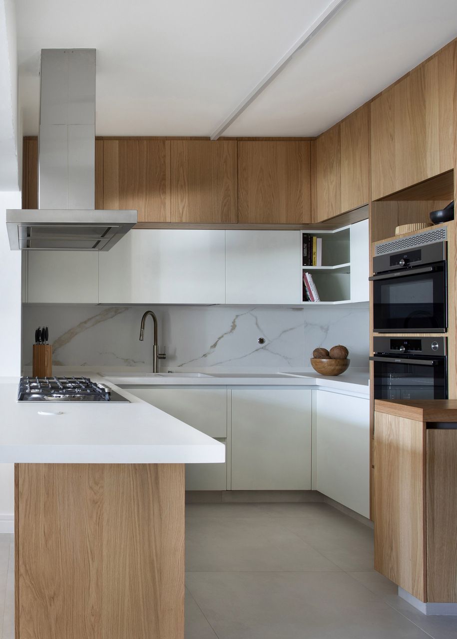 Os clientes pediram para integrar a cozinha com a área social de tal forma que a vista da lagoa estivesse no campo de visão de quem cozinha. Afinal, a fachada de vidro do prédio forma janelas imensas em toda a extensão das salas.