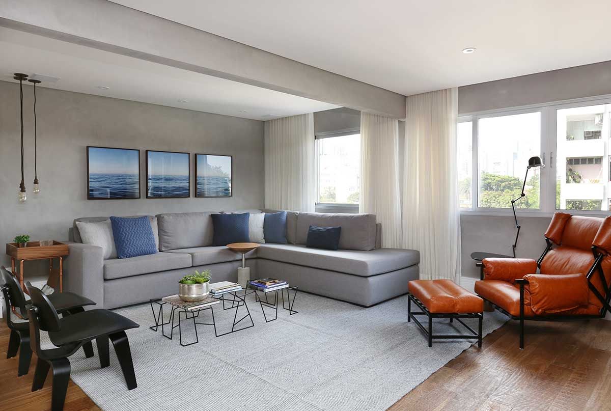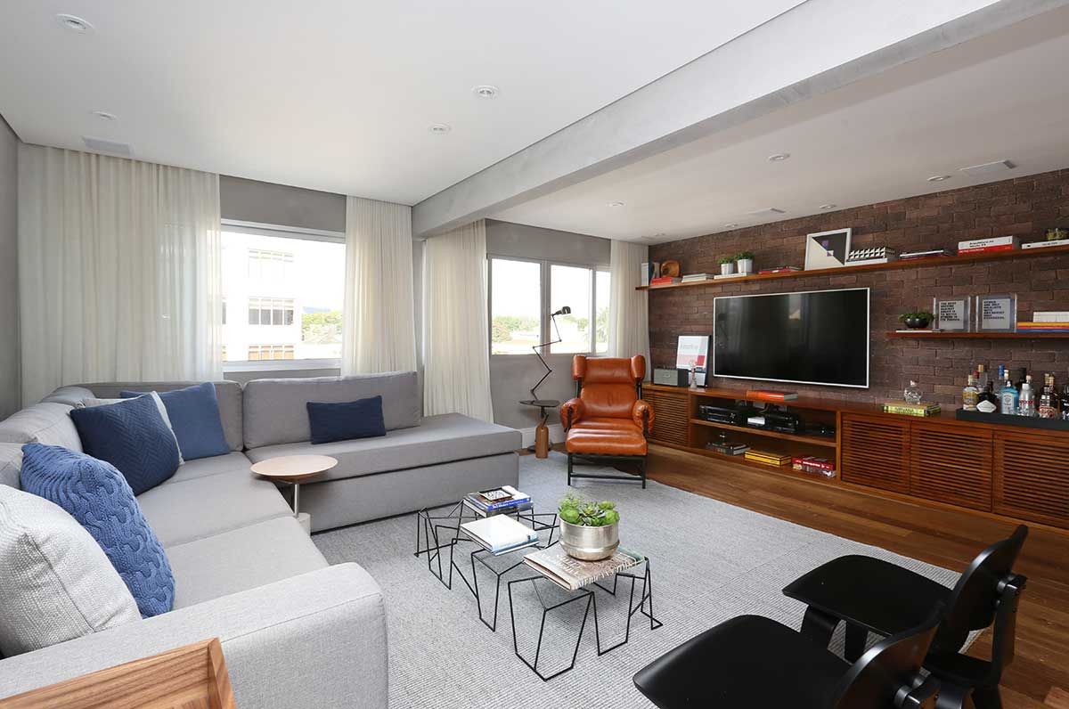 O cliente do escritório In and Out Decor queria um apartamento jovem, masculino, atemporal e aconchegante. O maior desafio para os profissionais foi deixa-lo o mais integrado possível, aproveitando a arquitetura do edifício que é antigo, com as vigas aparentes. E com cores neutras e toques de cores fortes em pontos chaves.
