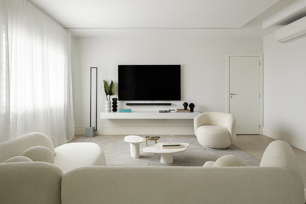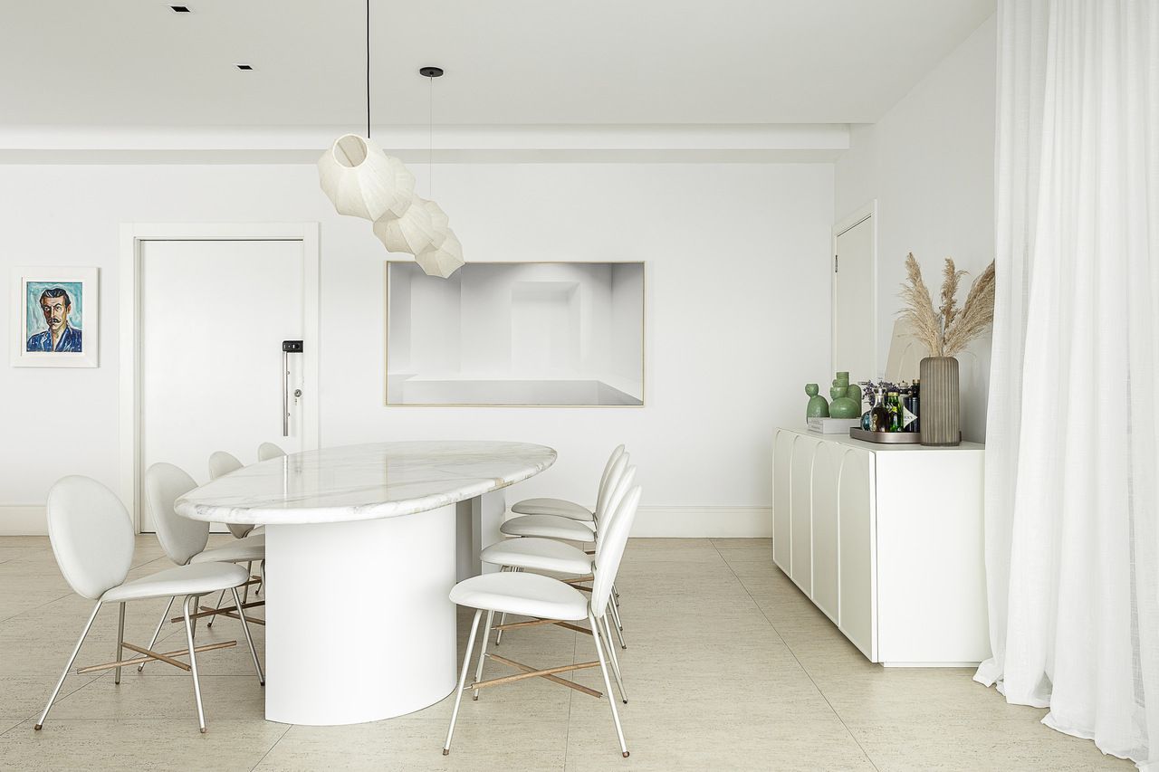 O apartamento na Vila Nova Conceição, em São Paulo, é o novo lar de um jovem casal, que escolheu morar neste apartamento temporariamente, a intenção deles é conhecer melhor o bairro e toda a infraestrutura que ele proporciona e procuraram o escritório Dubal Arquitetura e Design para assinar o projeto de interiores. A paleta de cores branca, escolhida pelo escritório, cria um ambiente minimalista e funcional com cores presentes em objetos e, no verde do paisagismo da varanda.
