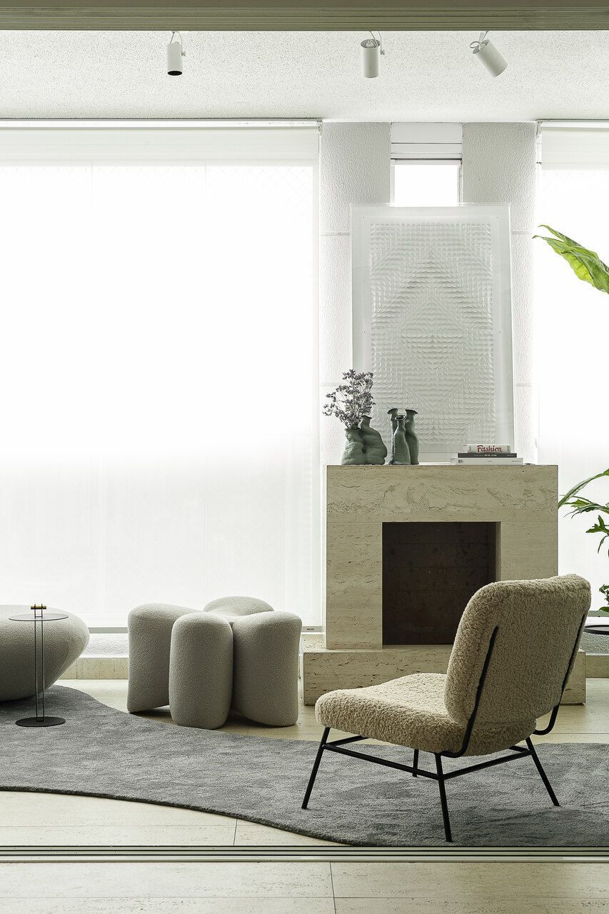 O projeto foi concebido com a ideia de ser funcional, sem obras e, com mobiliários mais leves e soltos. Os clientes queriam ambientes fluidos e integrados.