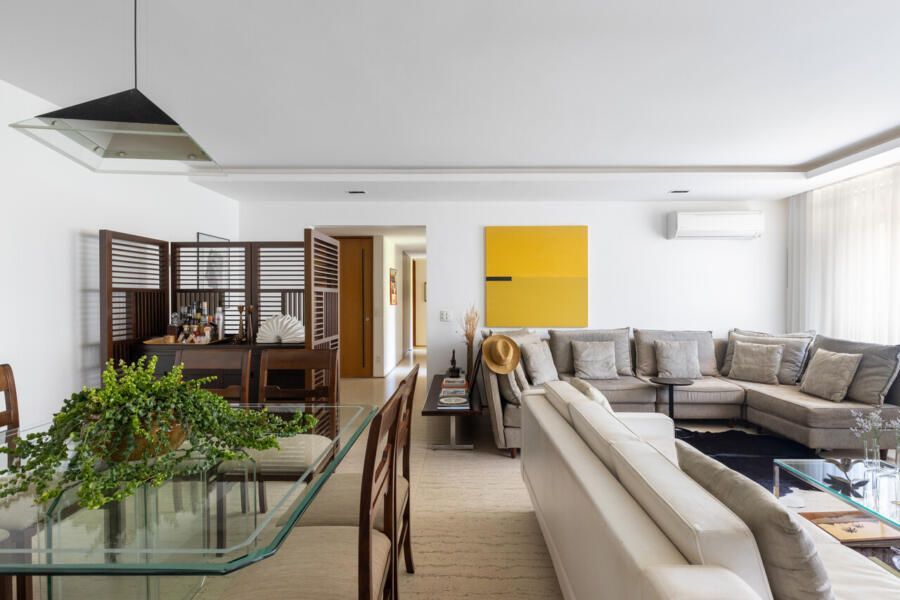 O escritório Victor Veiga Arquitetos assina o projeto desse apartamento de 135m² que buscou transformar um imóvel antigo em um espaço moderno, prático e confortável. O projeto levou em consideração a luz natural, a vista para a copa das árvores e a integração com a vida urbana de Brasília, criando um ambiente que conecta a natureza com o cotidiano da cidade.
