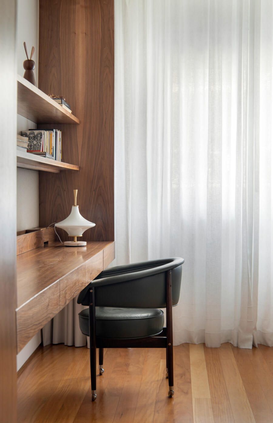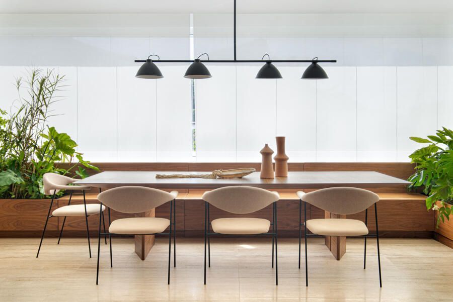 “Desde o início, os dois deixaram bem claro que queriam estar juntos o tempo todo quando estivessem em casa. Eles são grandes admiradores do design brasileiro e já possuíam muitas peças originais arrematadas em leilão.”