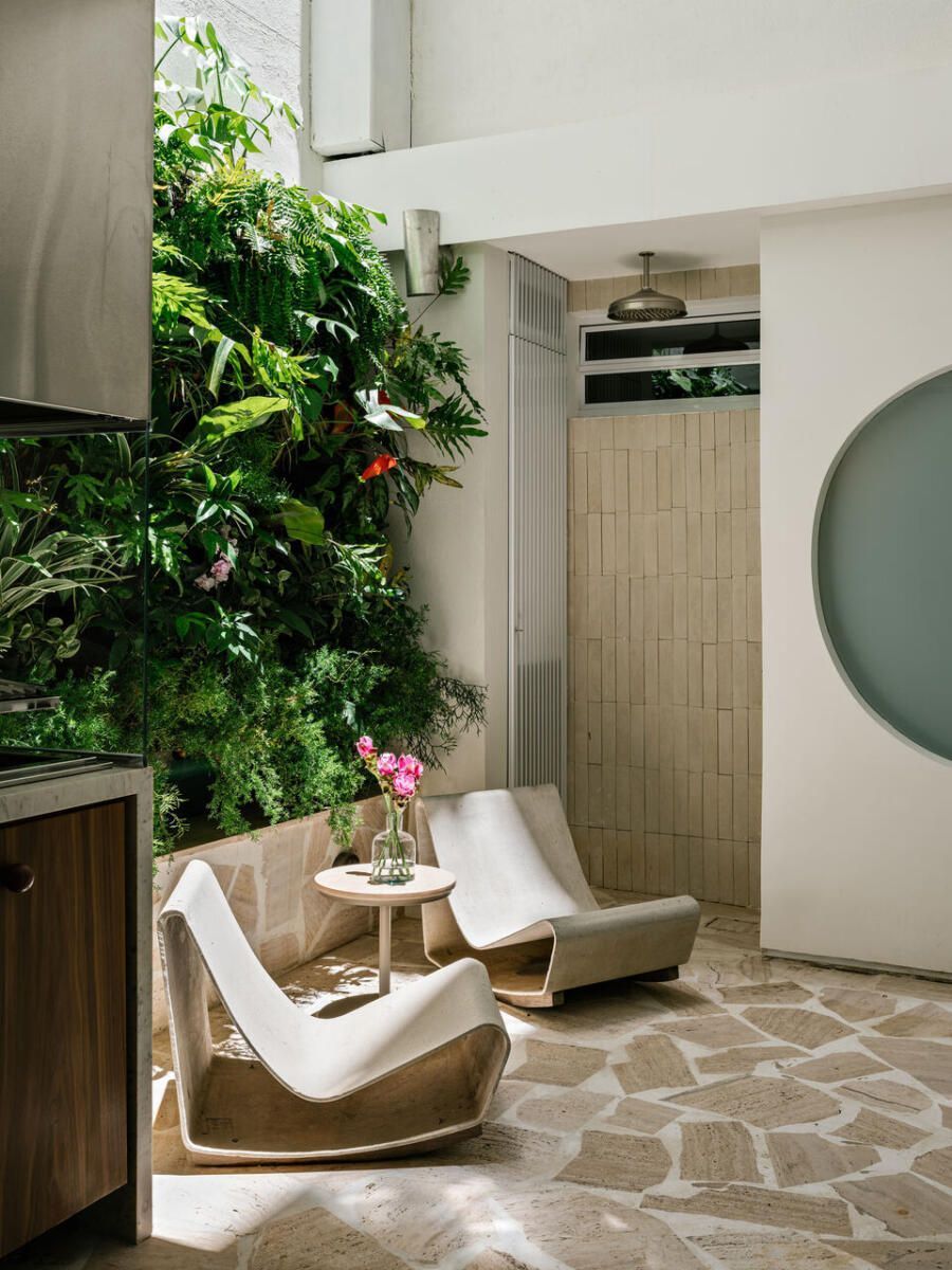 “Queríamos um apartamento no primeiro andar que nos fizesse sentir dentro da praia. Como trabalhamos remotamente, a distância da nossa base não é um problema.”