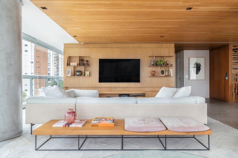 Criar ambientes integrados e que respeitassem o posicionamento das colunas de concreto já existentes no apartamento. Esse foi o principal pedido feito pelos clientes a arquiteta Viviane Gobbato para este projeto no Itaim Bibi, São Paulo.