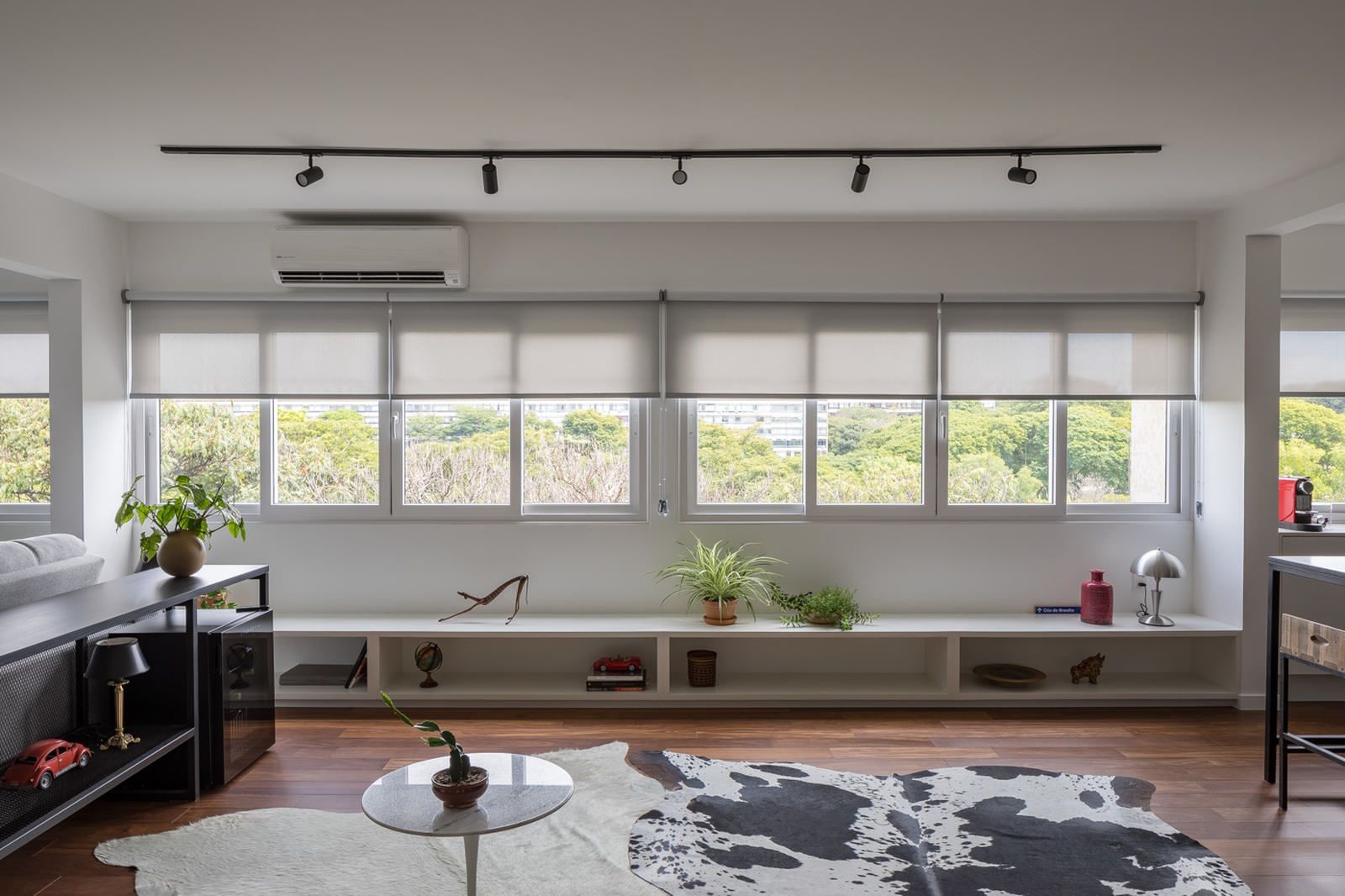 “Conhecedor da própria morada, ele queria que ela refletisse seu o atual momento de vida, e já tinha alguns desejos bem amadurecidos. O principal deles era trocar as janelas para modelos redutores de som, pois o apartamento se encontra de frente a uma grande avenida. Por conta disso, substituímos por janelas em PVC. O processo do projeto foi muito agradável, pois a sintonia entre nós e o cliente se deu de maneira leve e prazerosa.”