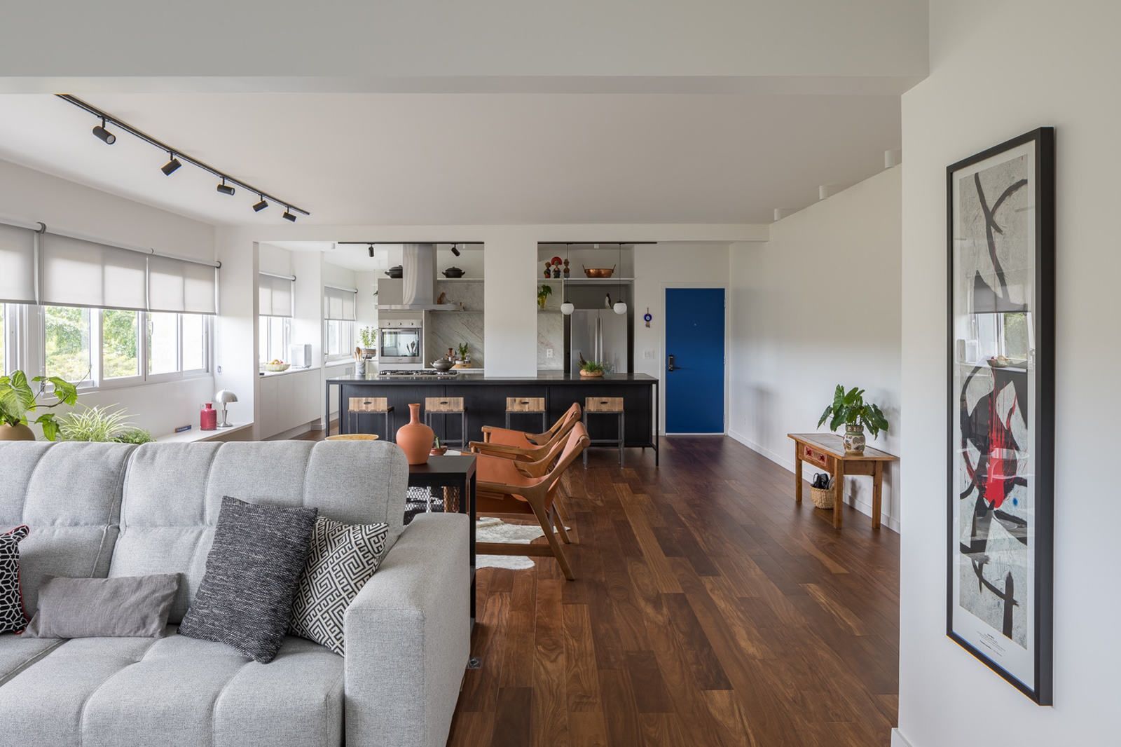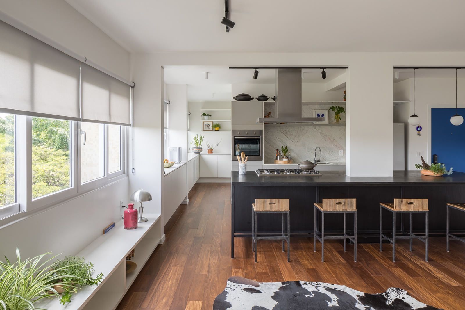 Uma reforma que integrasse os ambientes de um apartamento e o tornasse perfeito para a aposentadoria. Essas eram as premissas do cliente para este projeto na Asa Sul de Brasília assinado pela arquiteta Tatiana Lopes.