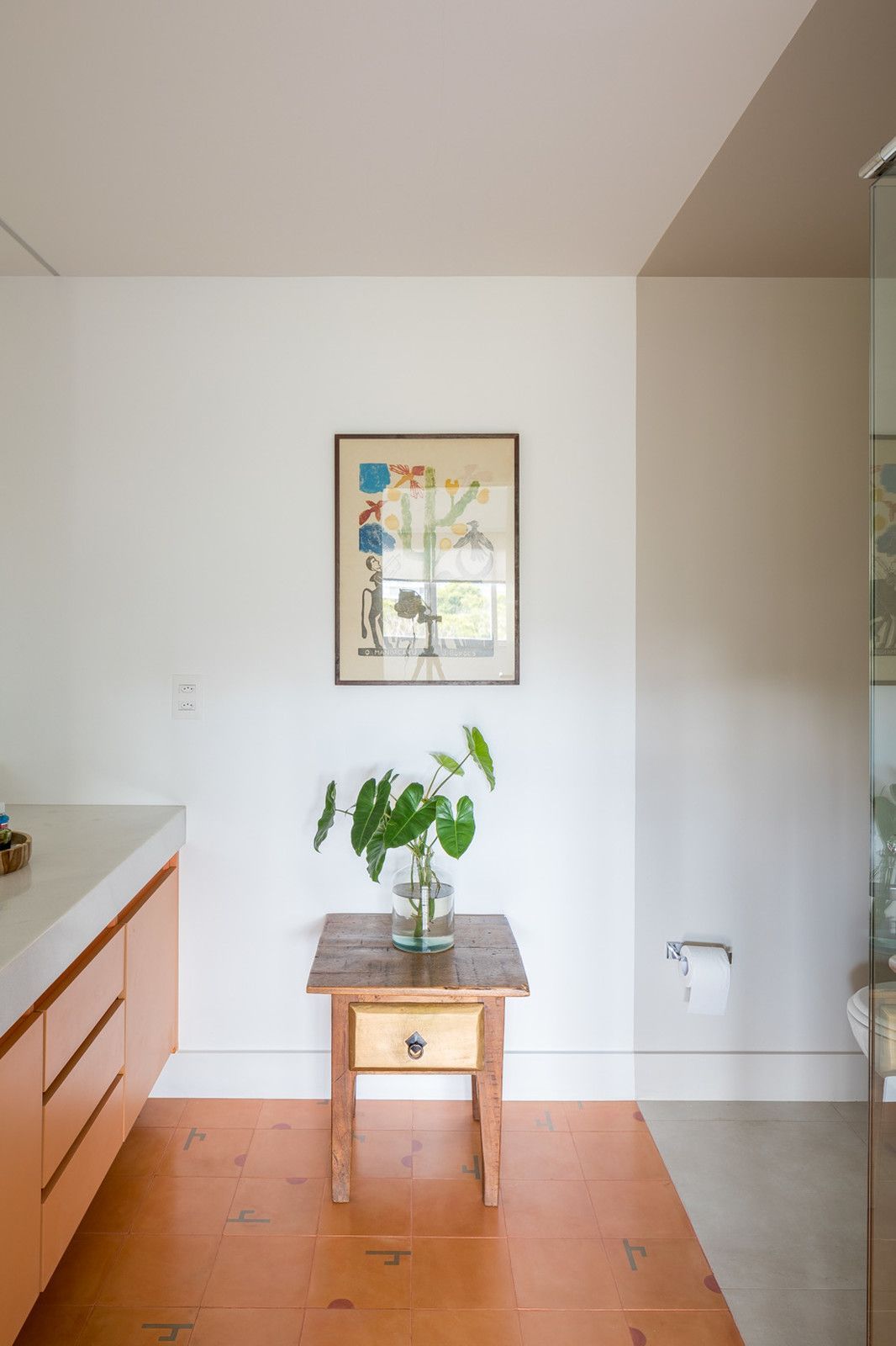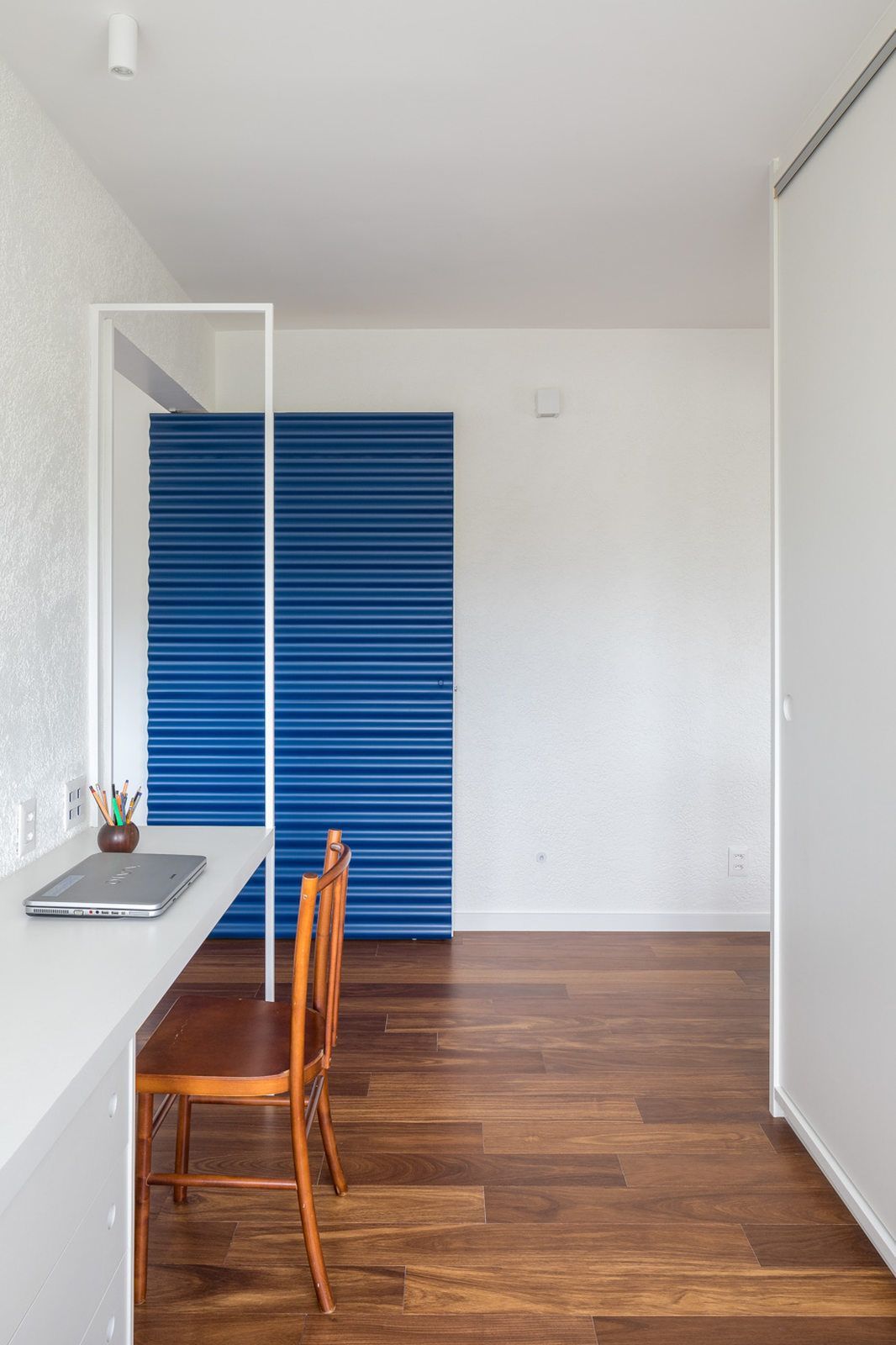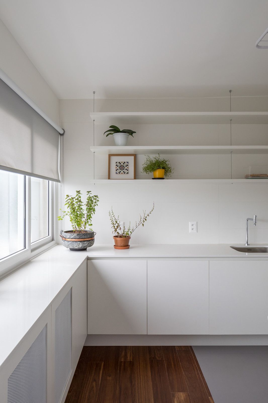 “É muito comum encontrarmos residências com banheiros inutilizados, o que acaba sendo um espaço morto e que gera manutenção. A sacada muito bacana que tivemos aqui foi transformar o banheiro de serviço em despensa, permitindo que o morador possa guardar alimentos e utensílios num cômodo protegido, e ainda fornecendo mais espaço livre para a cozinha, que necessita de uma quantidade menor de armários.”