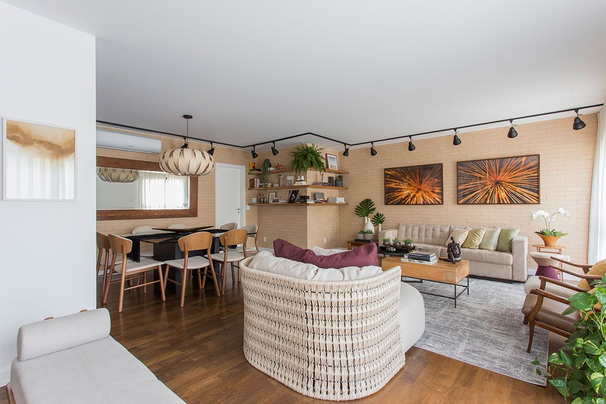 O escritório Bia Hajnal – Arquitetura do Bem-Estar foi procurado para deixar o apartamento de 310m², em São Paulo, com cara de casa. A ideia da profissional foi abrir o máximo de vãos para interligar tudo, tendo a maior visão das duas varandas que parecem quintal.