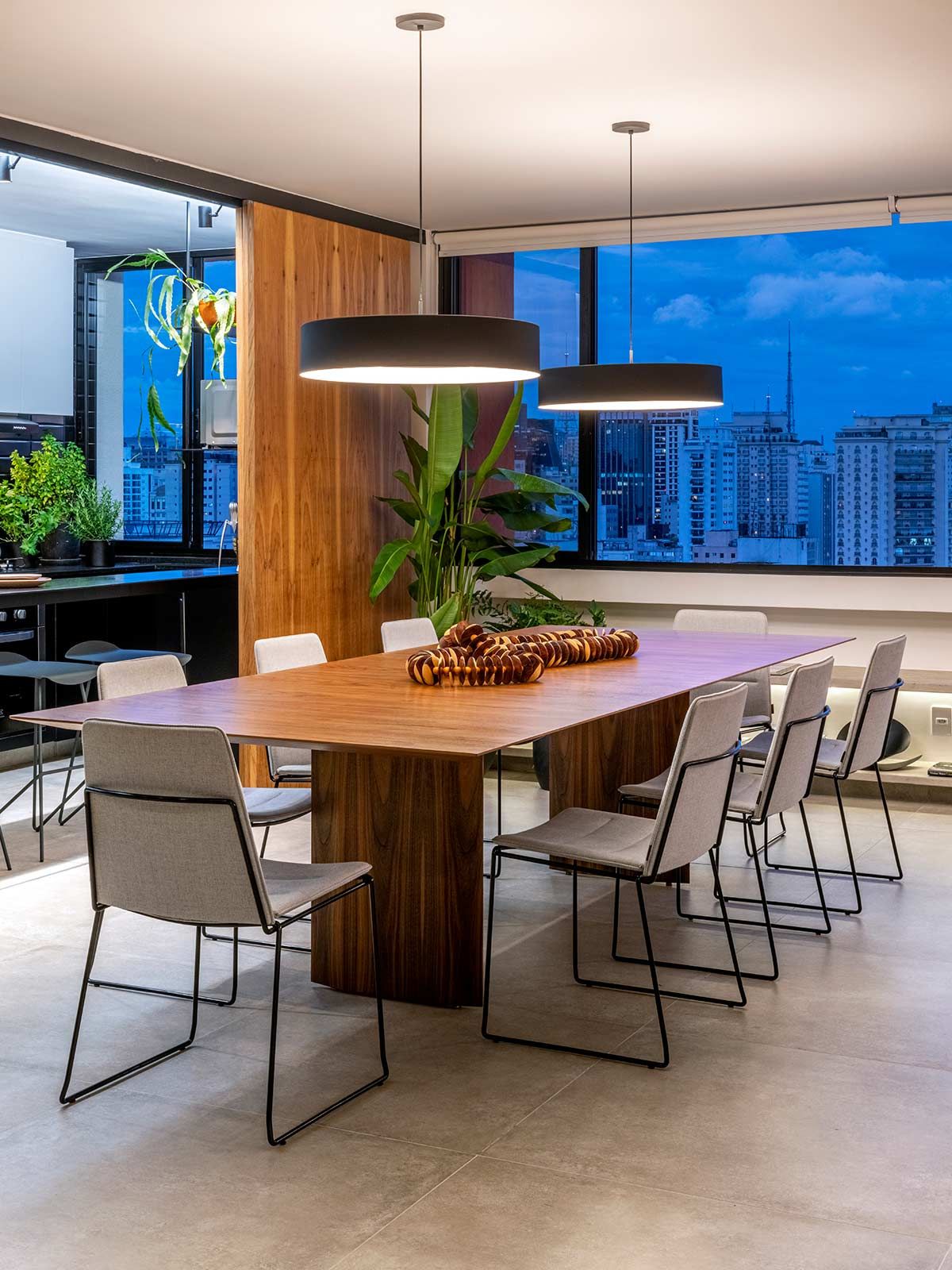Um jovem economista comprou este apartamento no 22º andar devido à localização no bairro do Jardins e pela vista panorâmica da cidade. Ele procurou o escritório Macro Arquitetos para assumir a reforma completa, que incluiu análise da infraestrutura e revisão de todo layout, priorizando a integração dos espaços e a vista.