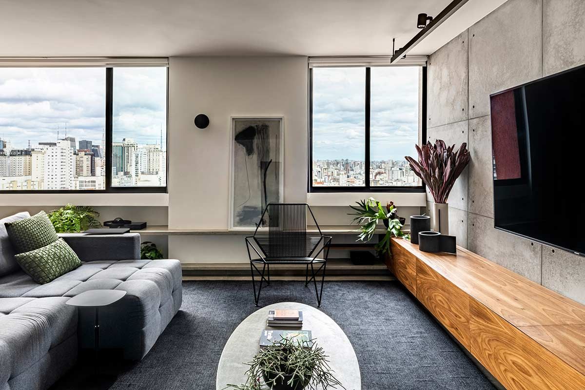 Apê com Decoração Cinza que Valoriza a Vista