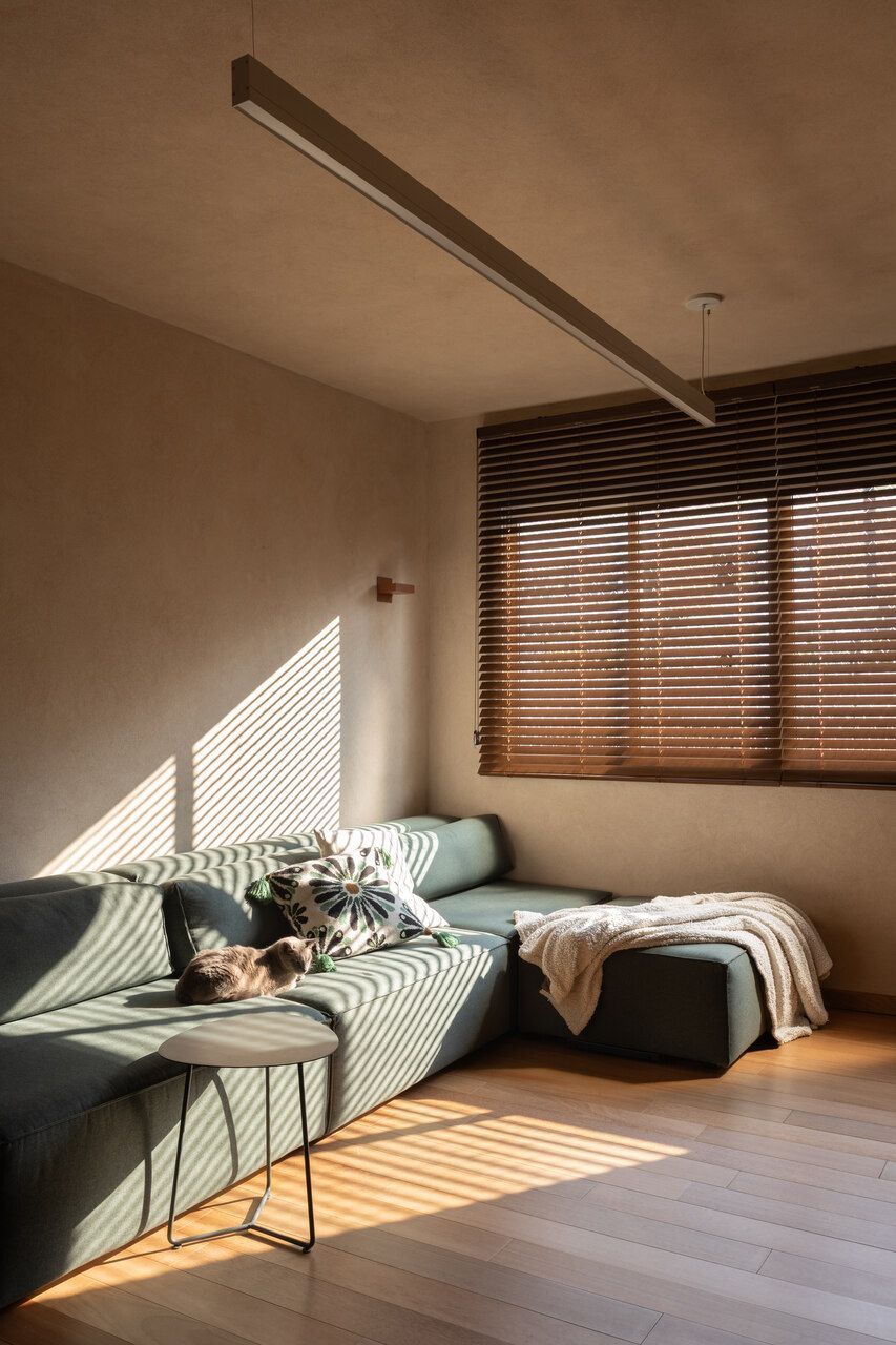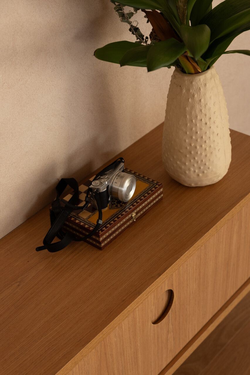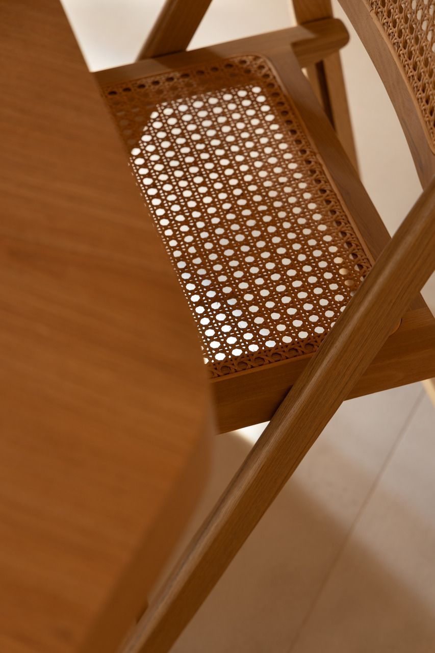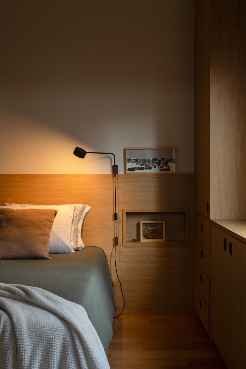 A paleta de materiais reforça o conceito de um habitar despretensioso e atemporal. Tons claros e terrosos, madeira em abundância, texturas que remetem à areia, além de elementos como palha e algodão, constroem uma atmosfera acolhedora e sensorial. A iluminação, predominantemente indireta, foi cuidadosamente desenhada para criar cenas intimistas e destacar marcenarias, objetos e obras, com luminotécnica assinada pela Reka Iluminação.
