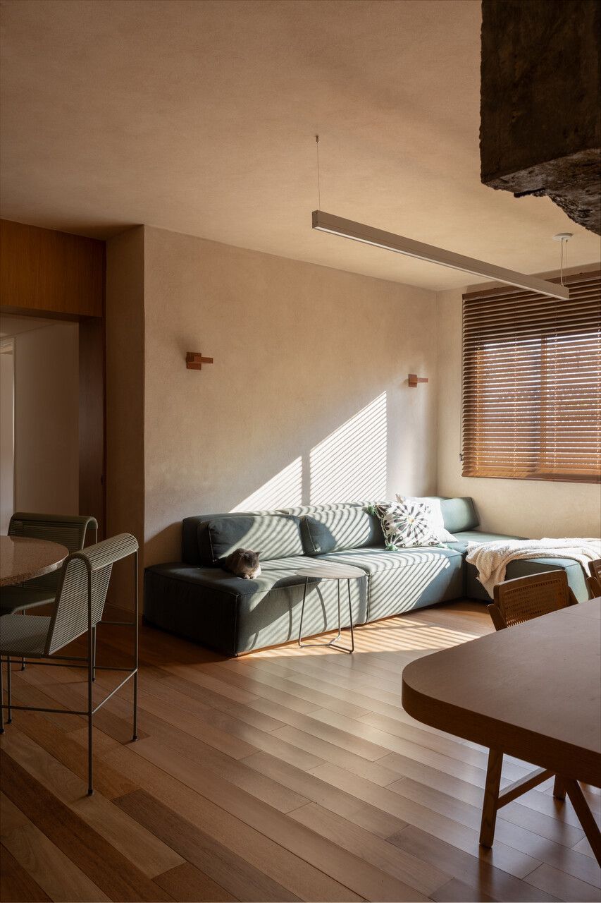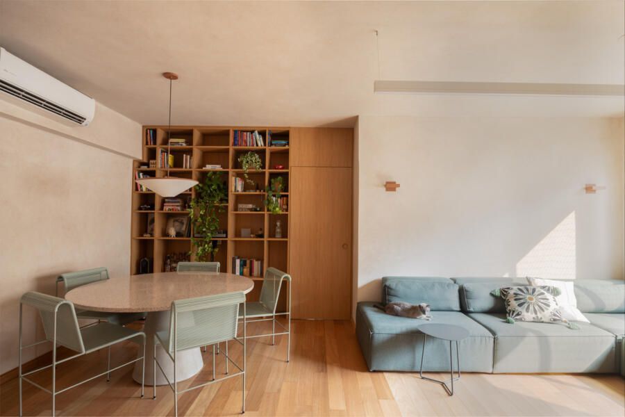Assinado por Magda Marconi e Marcelo Sacramento, do MSAC Arquitetura, este apartamento de 110m² passou por uma reforma completa que transformou um imóvel antigo em um refúgio contemporâneo, sensorial e profundamente conectado à natureza. Localizado em um condomínio tradicional do bairro, o projeto foi desenvolvido em apenas dois meses e executado ao longo de seis, entre junho e dezembro de 2024, com o desafio de atualizar a planta original sem perder a alma do edifício.