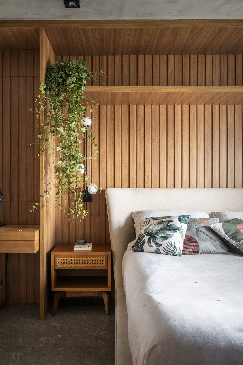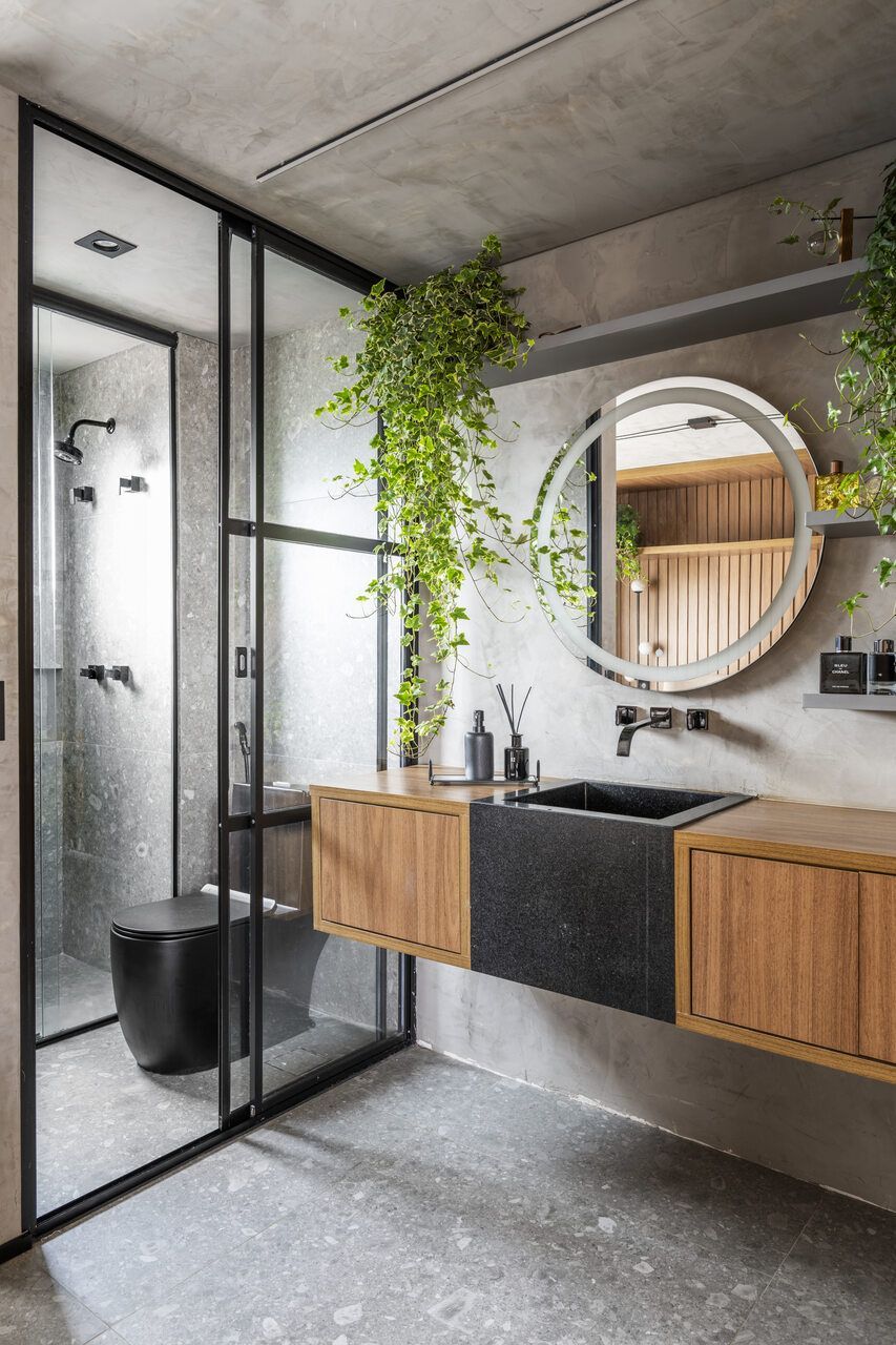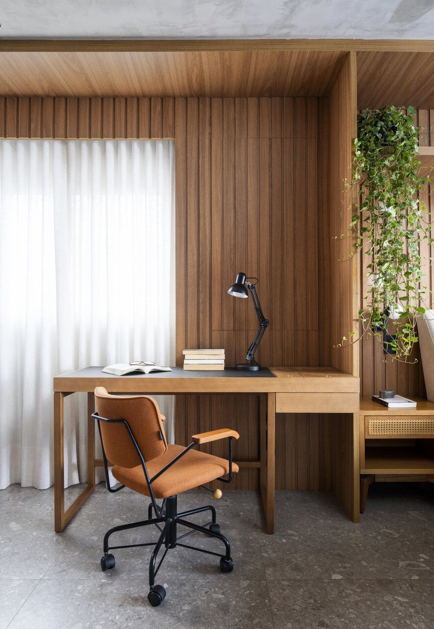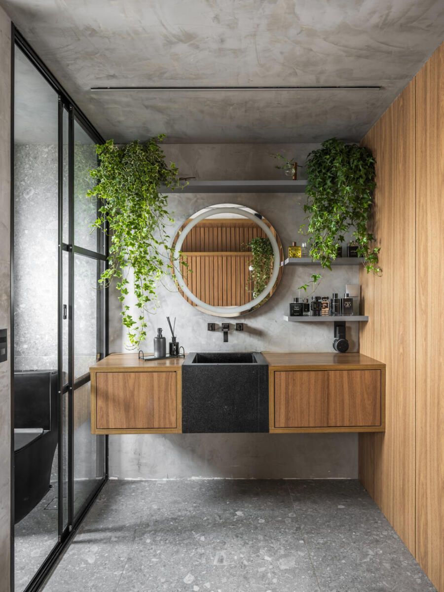 Um projeto que se destaca pela integração dos espaços, pela ousadia cromática equilibrada, pela personalidade e pelo paisagismo com plantas naturais — elemento que, inclusive, despertou um novo hobby nos moradores e tornou o apartamento ainda mais vivo.