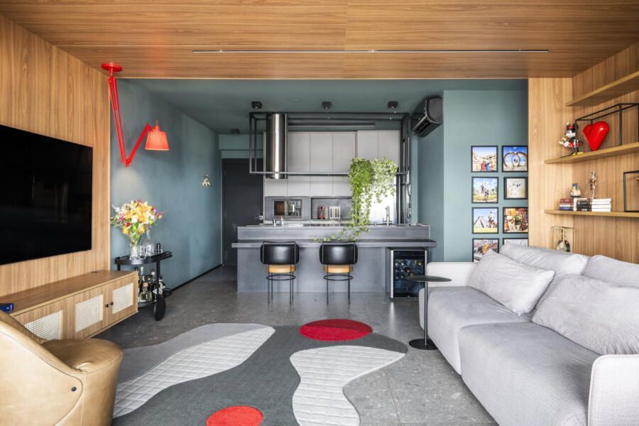 Em um apartamento de 84m², a designer de interiores Shirlei Proença conseguiu traduzir com precisão a identidade de seus moradores, Tiago Martins e Hailton: um casal jovem, moderno, apaixonado por cozinhar, por cores intensas e pela convivência com seus pets. Desenvolvido ao longo de quatro meses de projeto e oito meses de obra, o apê passou por uma reforma completa para se tornar um lar confortável, afetivo e cheio de personalidade, onde cada escolha foge do óbvio e valoriza o cotidiano.