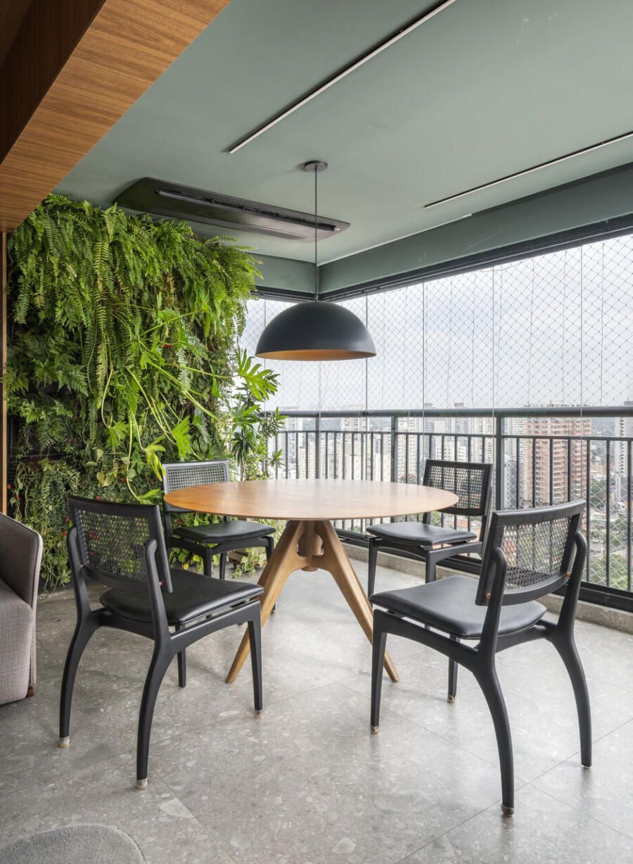 “Quando pensamos em nosso apartamento, queríamos um lar que refletisse nossa identidade e fosse acolhedor para nós e nossos pets. A Shirlei Proença conseguiu traduzir esse desejo trabalhado em alguns momento de boas trocas de ideias, com sensibilidade e criatividade, trazendo vida através de nosso jardim vertical com plantas naturais, com nossa mesa de jantar onde adoramos fazer nossas refeições olhando a vista, sobretudo à noite, e personalizando cada espaço de forma única, buscando sair do óbvio.”