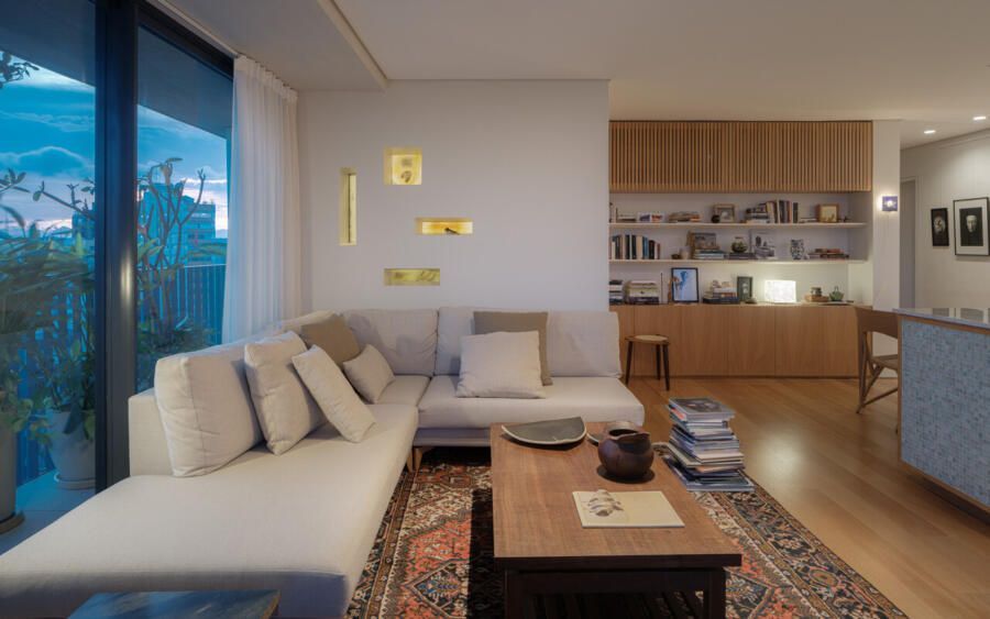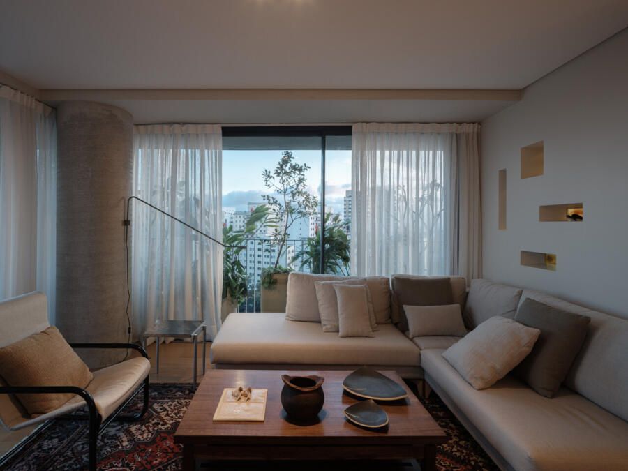 “Todos os dias percebemos o acerto do layout, pensado para enquadrar a vista com o horizonte da cidade. As janelas atuam como quadros vivos de uma forma muito natural. Ver o movimento da metrópole à distância nos traz uma calma inesperada, servindo de contraponto à tranquilidade que temos aqui. O horizonte se tornou um elemento da casa, um fundo para nosso dia a dia que expande a sensação de liberdade.”