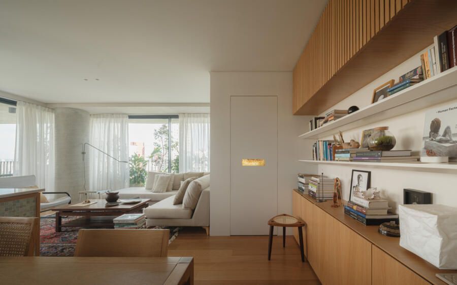 A busca pelo escritório surgiu de maneira afetiva: os moradores descobriram a H2C por meio do vídeo do apartamento de Helena, sócia do estúdio, e imediatamente se conectaram com a delicadeza das soluções e com o modo como a arquitetura parecia se adaptar à rotina dos clientes. A partir daí, iniciou-se uma parceria que combinou escuta cuidadosa, experimentações e uma compreensão profunda do que aquela nova fase representava.
