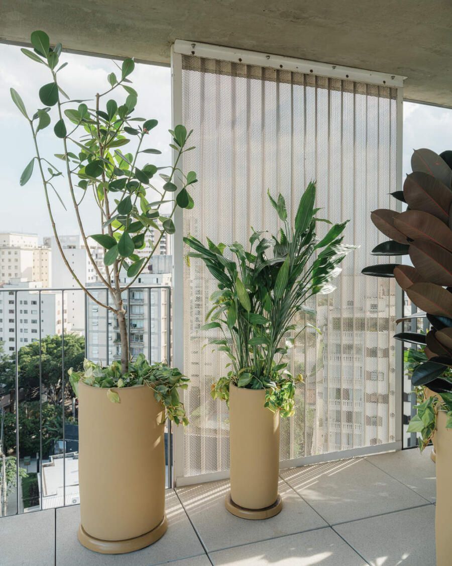 A vista, ampla e aberta para o horizonte paulistano, também ganhou papel estrutural no projeto. O layout foi minuciosamente desenhado para enquadrar a cidade como um quadro vivo, um contraponto poético ao silêncio interno. Essa relação entre interior e exterior reforça a atmosfera tranquila que acolhe o casal todas as manhãs e funciona como um pano de fundo constante para a criação artística.