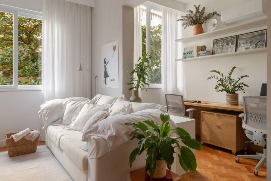 Localizado em Copacabana, na Zona Sul do Rio de Janeiro, este apartamento de 100m² passou por uma transformação completa assinada pela arquiteta Paula Müller. Comprado em mau estado, o imóvel ganhou nova vida para receber a agente de viagens Patrícia, o marido e o filho de oito anos, que decidiram se mudar para o bairro em busca de uma rotina mais próxima da mãe dela e também mais funcional para o dia a dia da família.