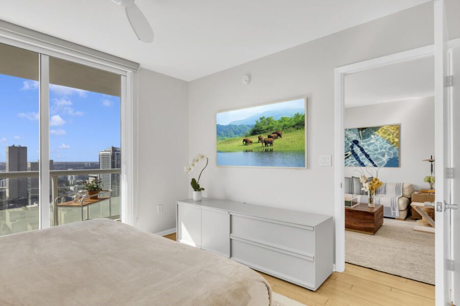 A arte, aliás, não é coadjuvante, mas elemento estruturante do projeto. Obras do artista brasileiro Tom Capobianco atravessam os ambientes, levando densidade cultural tanto à cozinha quanto ao dormitório. Essa presença artística se desdobra na área social, onde cada peça parece cuidadosamente posicionada para construir uma narrativa visual coerente e envolvente.