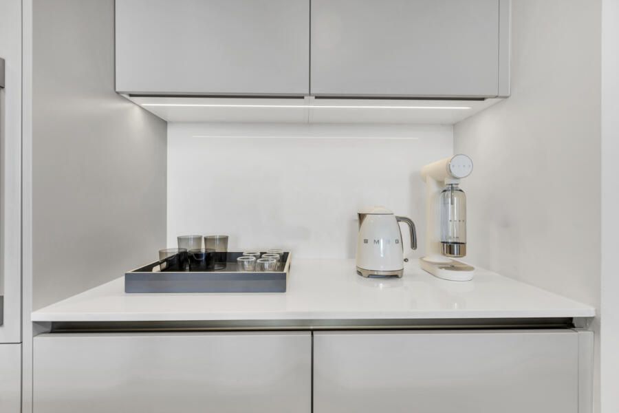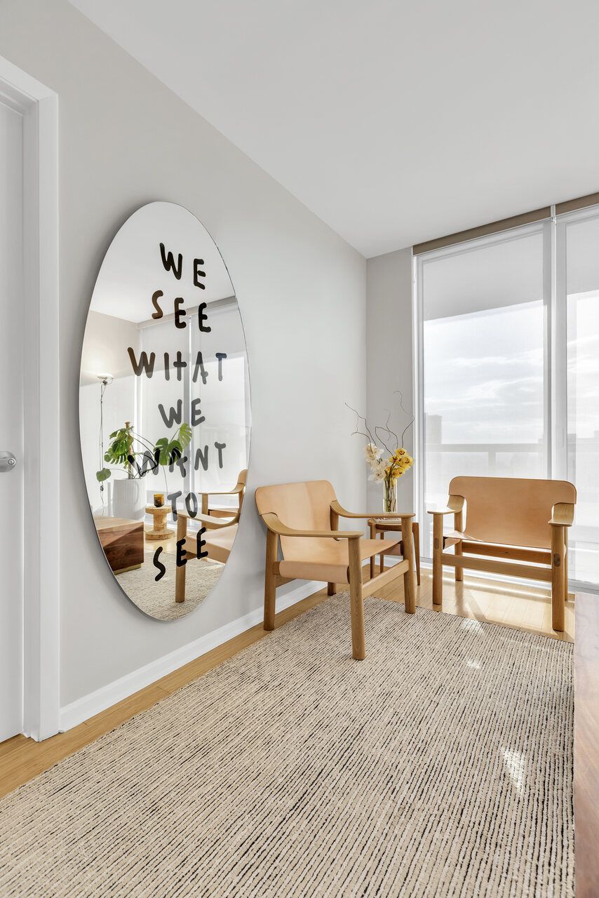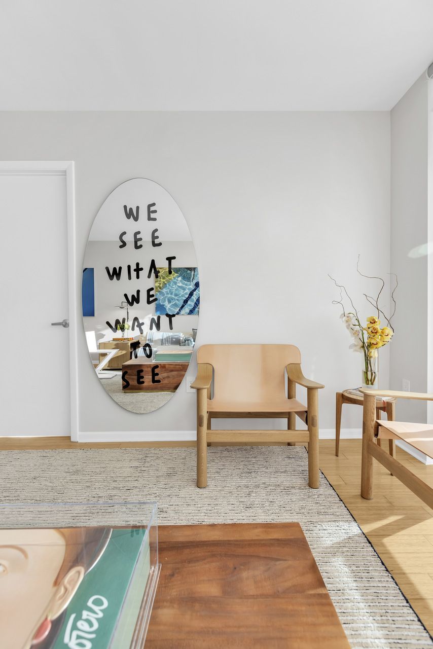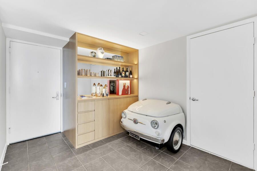 Entre os elementos mais marcantes, o espelho statement surge como síntese do conceito do projeto, abordando a ideia compartilhada entre arquiteto e cliente de que “Nós vemos o que queremos ver”. Ao lado de ícones do design italiano e de peças carregadas de memória afetiva, como a geladeira com inspiração retrô posicionada como bar, o apartamento se revela como uma composição íntima e sofisticada. Pequeno na metragem, mas expansivo na narrativa, o projeto transforma o cotidiano em experiência, onde arte, luz e design coexistem em perfeita harmonia.
