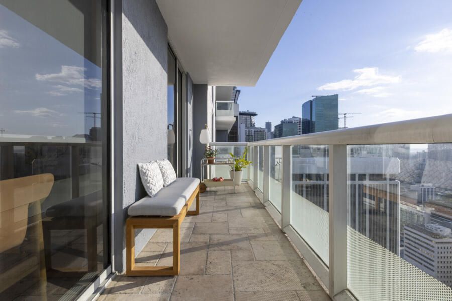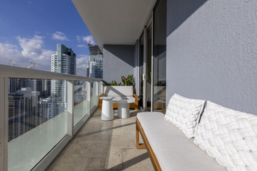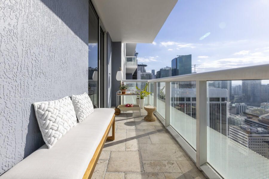 Assinado pelo arquiteto Rodolfo Pomini, do Studio Pomini, este apartamento de 45m² em Miami, na Flórida, revela como uma escala reduzida pode ser potencializada por escolhas inteligentes e bem planejadas. Pensado para um homem solteiro, o projeto nasceu a partir de um pedido direto: mais luz, uma atmosfera artística e uma paleta mais clara, sem abrir mão do piso original em granito preto presente na entrada e na cozinha.