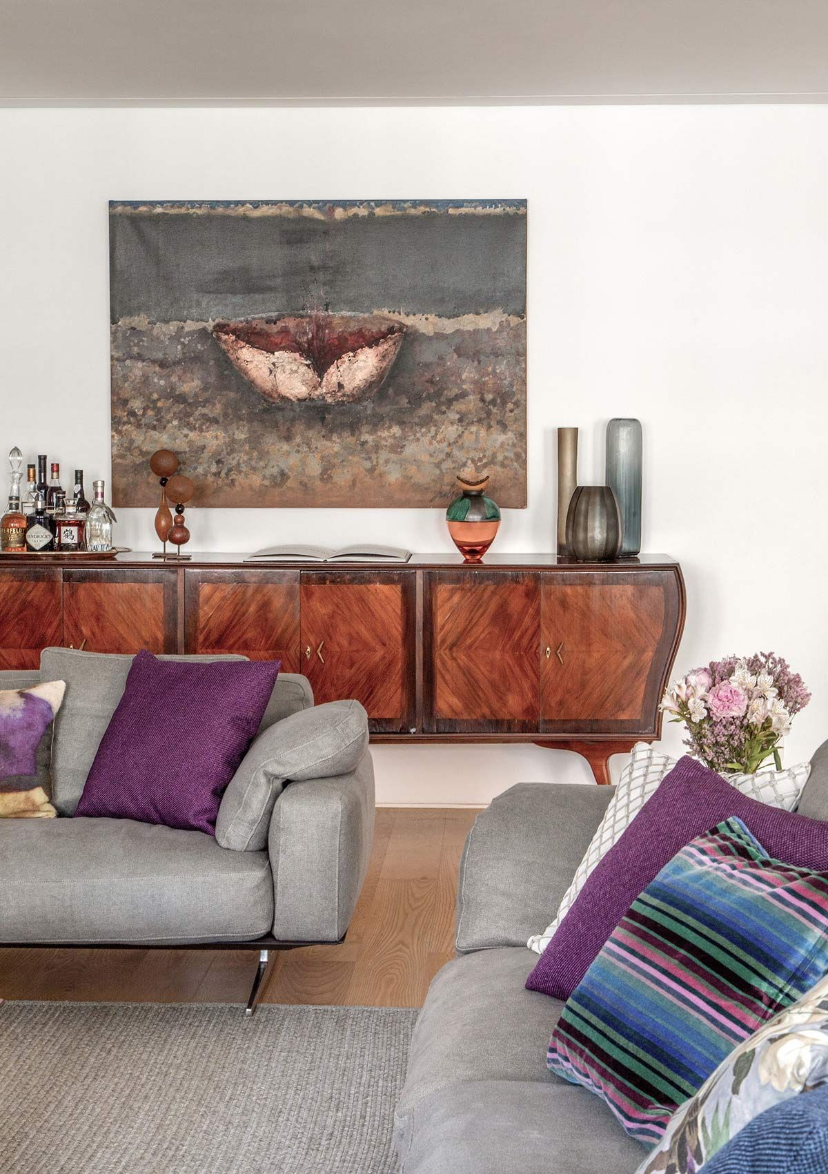 O décor traz móveis com design contemporâneo e peças de antiquário, que agregam bossa à estética. Durante o dia, a luz natural banha os cômodos da morada, permitindo uma sensação de amplitude e suavidade. Já a iluminação artificial, foi toda repensada por uma empresa especializada em luminotécnica, visto que o existente era algo muito básico.