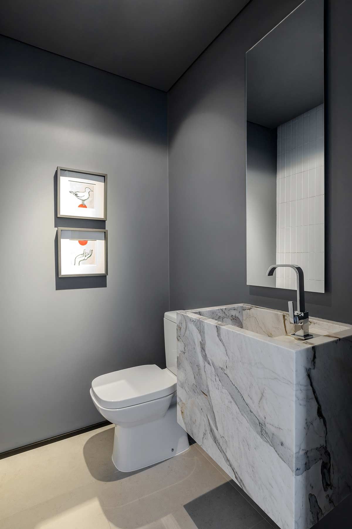 O apê funcionou como uma tela em branco, que nos possibilitou explorar sua sua espacialidade com bastante liberdade. Os banheiros, cozinha e serviço já tinham posições pré-definidas, então resolvemos criar uma relação de simbiose entre os outros cômodos.