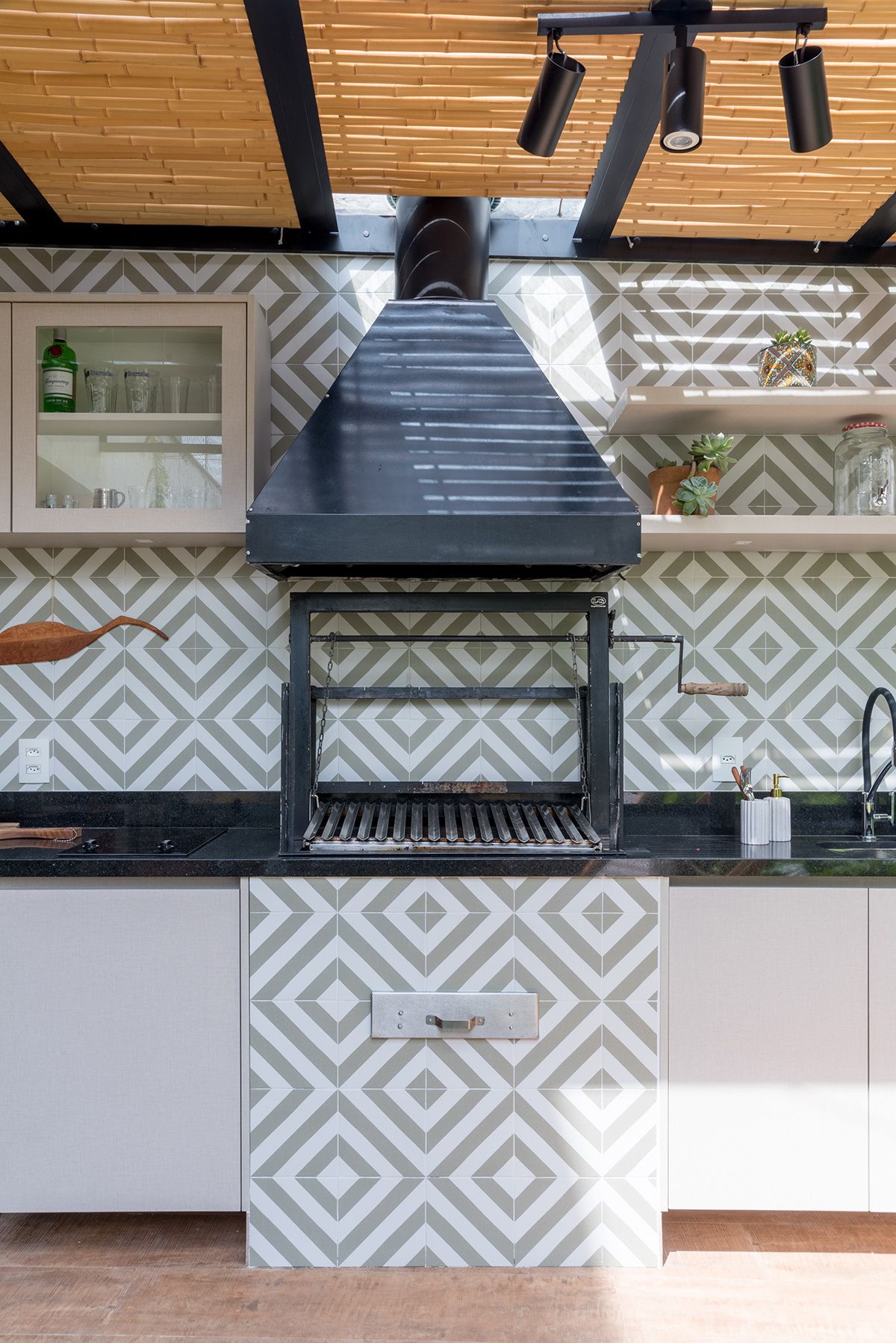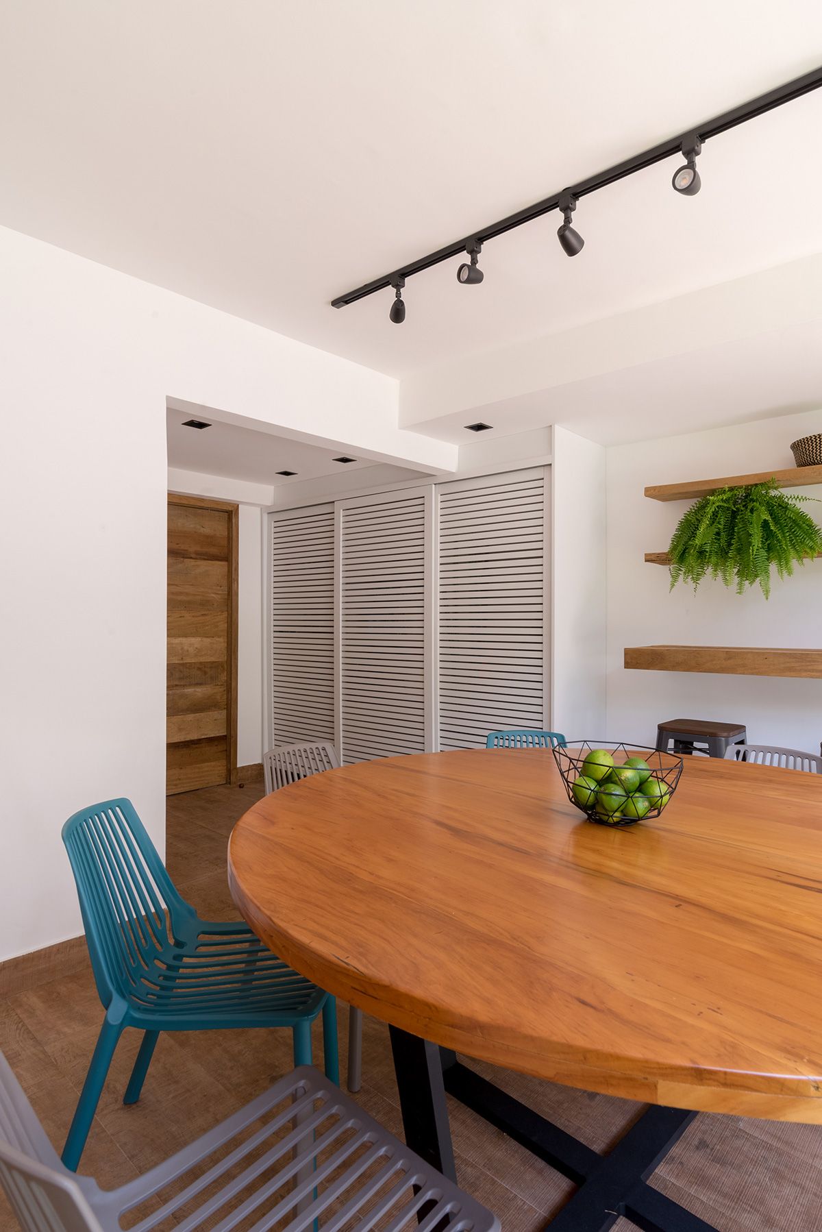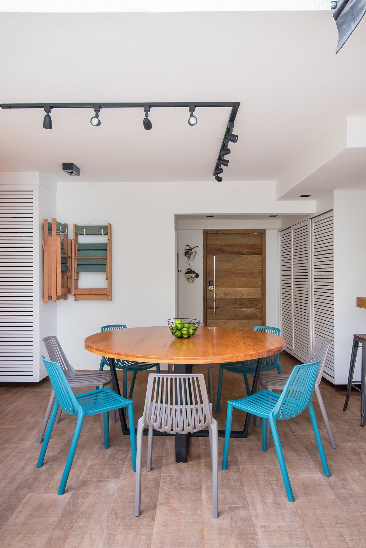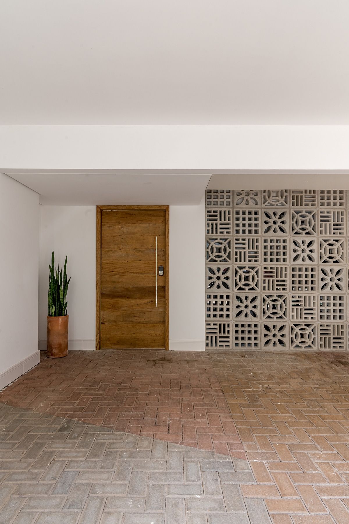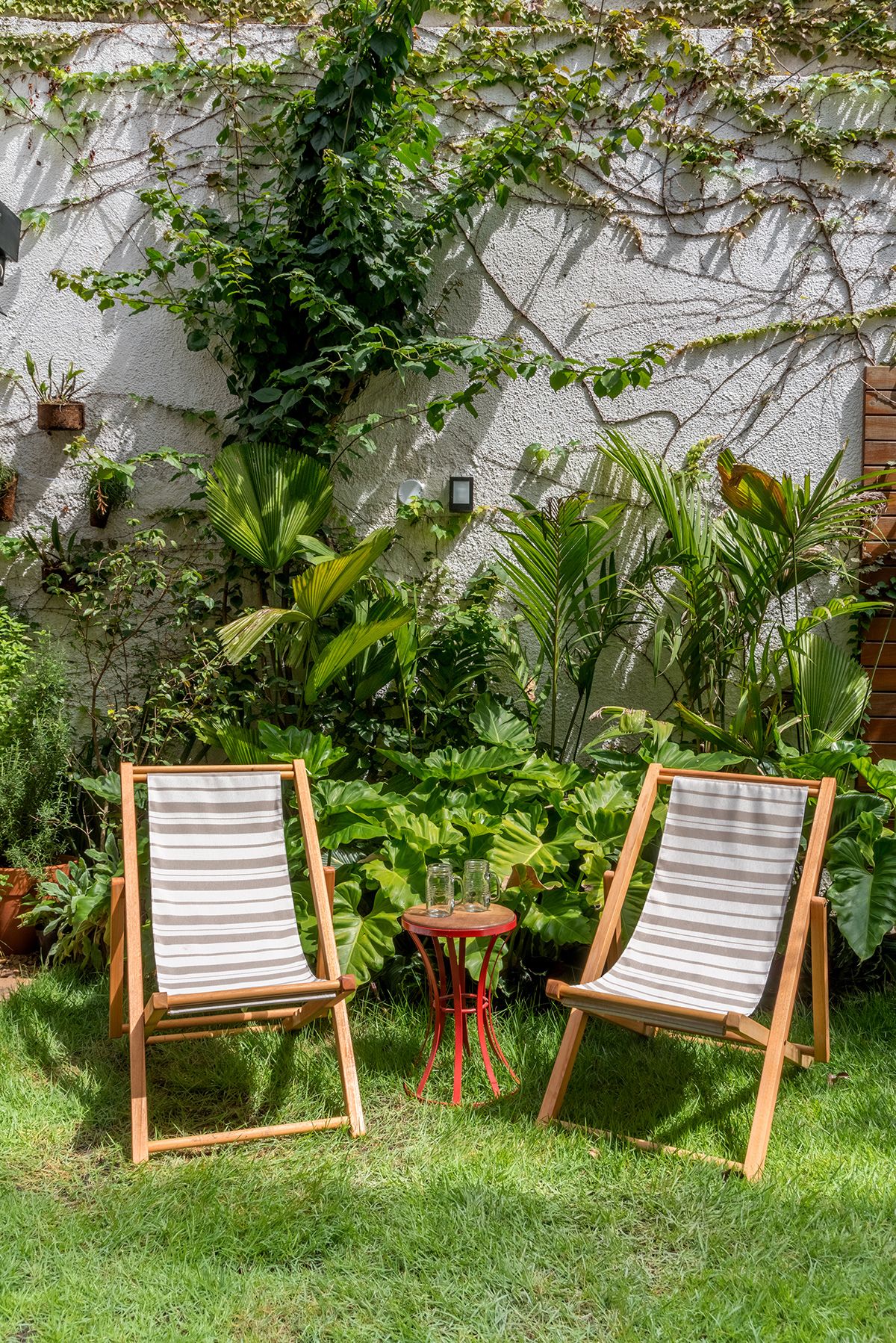 Paredes foram eliminadas e, com a diminuição da lavanderia e do depósito, a designer conseguiu incluir um lavabo bem charmoso. A fachada também foi reformada, o espaço na garagem que antes era vaga extra, recebe hoje uma mesa de oito lugares, e tudo ficou mais amplo e agradável com o projeto de paisagismo.