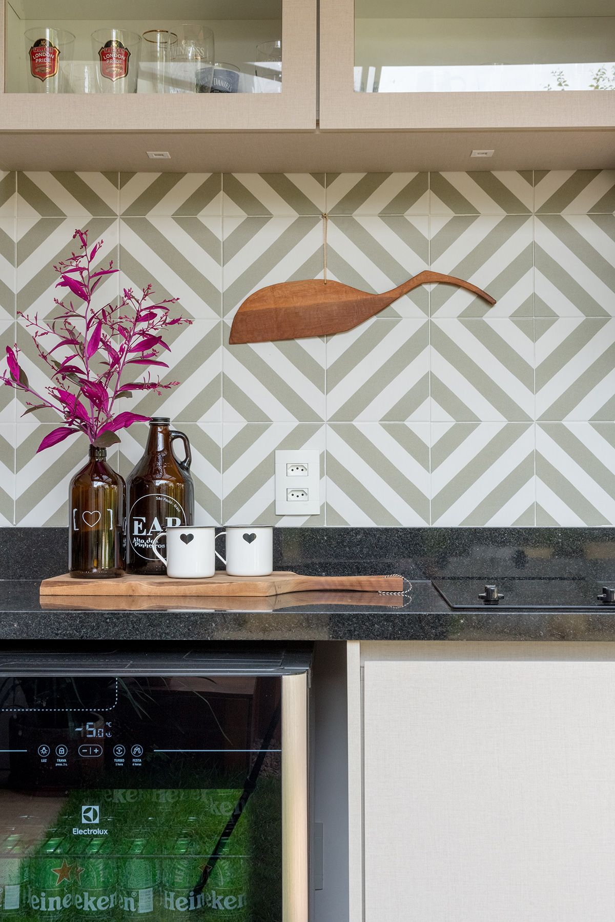 O casal de mineiros queria uma área social onde pudessem aproveitar com o filho pequeno, e receber visitas de familiares e amigos. Em uma casa de dois andares na Vila Romana em São Paulo, eles encararam uma obra vivendo lá, e quem assina esse projeto é a designer de interiores Marina La-Gatta.